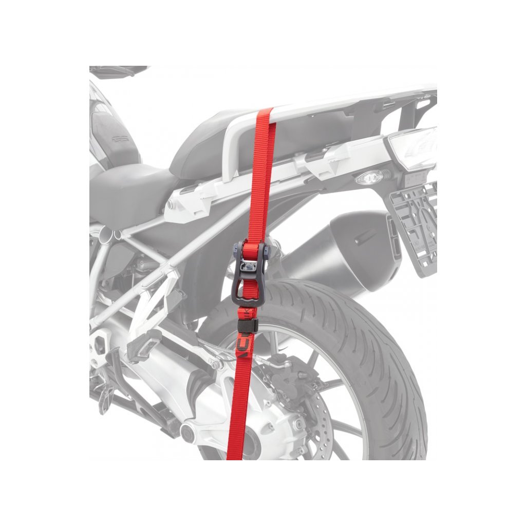 Praktické a velmi pevné popruhy z kvalitního polyesteru. 200 cm dlouhé polyesterové popruhy jsou vybaveny galvanizovaným, plastifikovaným hákem a umožňují bezpečné a spolehlivé upevnění při přepravě motocyklu.