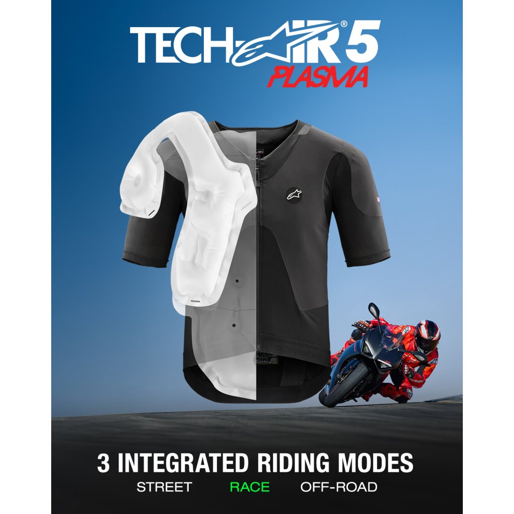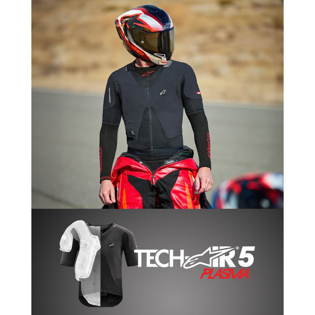 Díky vývoji s mnohaletými zkušenostmi v sortimentu autonomních, airbagových vest společnosti ALPINESTARS jsou systémy TECH-AIR® hráčem č. 1 v oblasti ochranných technologií a systém TECH-AIR®5 PLASMA je aktuálně jedním z posledních přírůstků do rodiny ALPINESTARS TECH-AIR®. Vesta je navržena jako ultralehká, s jedinečným komfortem a "neviditelným" střihem při zachování ochrany těla v oblastech trupu vč. hrudi, žeber, zad a ramen. Zádový protektor s technologií PLASMA napomáhá zajišťovat optimální komfort, pružnost, prodyšnost a ochranu uživatele. Díky pokročilému algoritmu současné verze vesta disponuje třemi volbami jízdního režimu s možností STREET (silniční provoz), RACE (okruh) a OFFROAD (možnost jízdy po nezpevněných cestách v terénu). TECH-AIR®5 PLASMA disponuje jednou bombičkou s plynovou kartuší, kterou je možné snadno a rychle vyměnit koncovým uživatelem vesty.