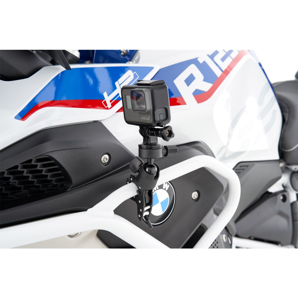 Držák ActionCam a univerzální držák »MultiClamp« jsou spojeny pomocí systému rychlého uvolnění. Úhel držáku ActionCam lze plynule nastavovat. Je navržen tak, aby tlumil nárazy a tlumil vibrace. Příslušenství je doplněno adaptérem pro stativový závit.