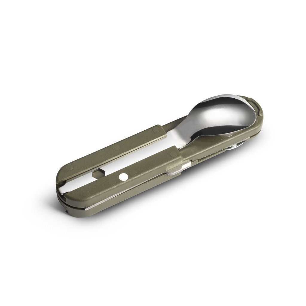 BIVOUAC CAMP KNIFE ARMY GREEN HANDLE FORK & SPOON Kapesní nůž/příbor s pouzdrem