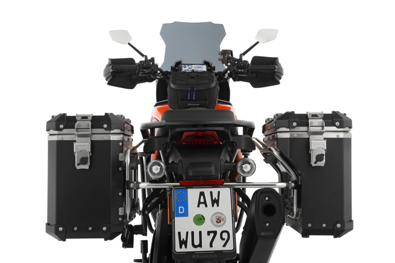 Po otevření obou zámků lze víko zcela vyjmout, umístit na sedlo a pohodlně nakládat . Pokud je otevřen pouze jeden ze dvou zámků, víko může být nastaveno a dodatečně je stabilizováno bezpečnostním lankem ke kufru. Druhý uzávěr pak slouží jako závěs. Funkční zavazadlový systém je tak optimálně integrován do konstrukce motocyklu.