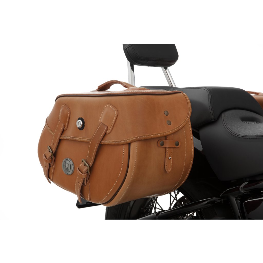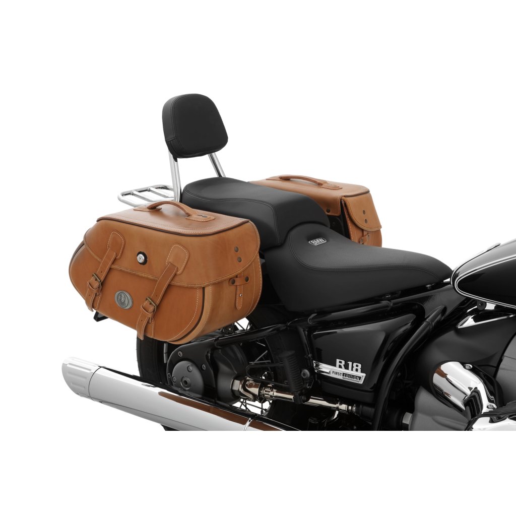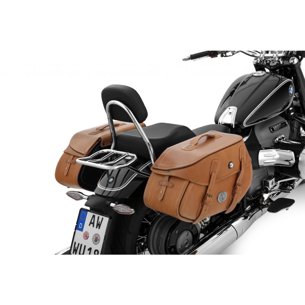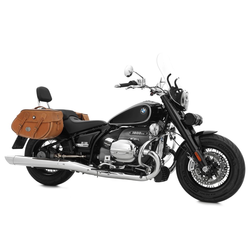 Stylově a co do tvaru, velikosti a amerického vzhledu jsou kožené brašny vyrobeny na vysoké úrovni a dokonale ladí s BMW R 18. Kombinují oldschoolový styl se současným, nekomplikovaným ovládáním, protože mají uzamykatelný držák C-Bow.