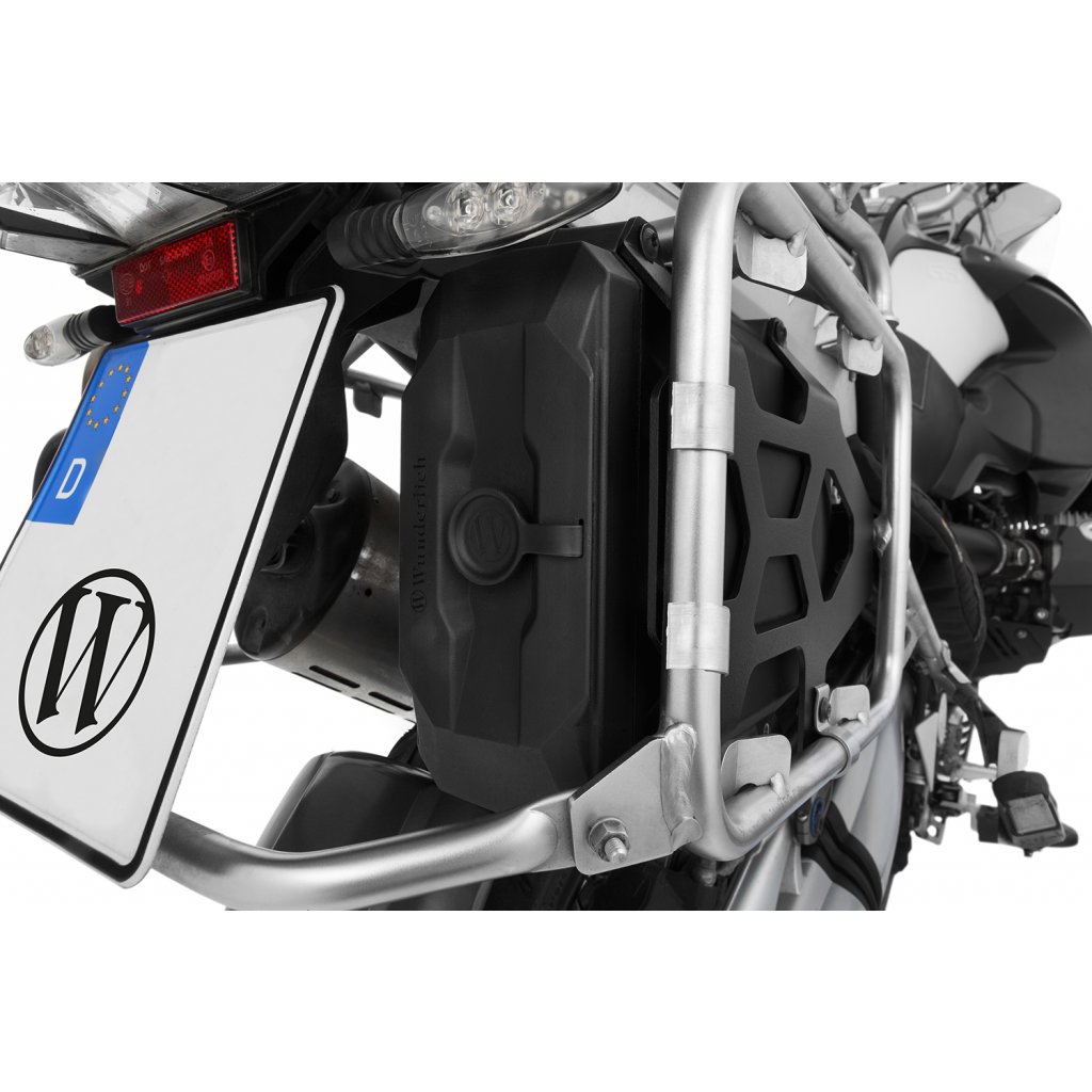 Naše skříňka na nářadí šitá na míru nabízí další úložný prostor pro všechny druhy užitečných drobností a je dokonale integrována do výklenku mezi levým nosičem zavazadel a zadním kolem. Funkční robustní box je bezpečně připevněn na standardním nosiči kufru pomocí držáku a odpovídajících svorek. Pro snadný přístup je možné jej kdykoli otevřít a zavřít zezadu - i když je kufr nainstalován. Kryt je zajištěn proti ztrátě. Krabice z vysoce kvalitního plastu je vodotěsná a extrémně robustní. Dodáváme je s držákem.