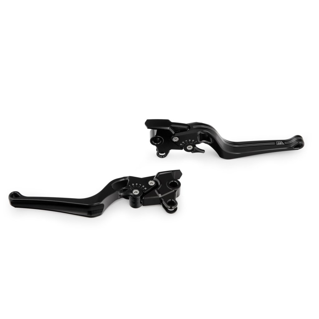 Tyto brzdové a spojkové páčky dokonale ladí s impozantním vzhledem BMW R 18. Úchopové plochy se dvěma jemně provedenými, mechanicky vyrobenými liniemi jsou důkazem vysoce kvalitního a elegantního designu páček v každém ohledu . Kromě jemnosti designu je kladen zvláštní důraz na ergonomii: Příjemně široké uchopovací plochy lze nastavit v šesti plných krocích, což je velkorysý rozsah, ve kterém si každý určitě najde své vlastní individuální nastavení. Seřízení lze v případě potřeby provést jednou rukou za jízdy. Černě eloxované brzdové a spojkové páčky této sady jsou vyrobeny z vysoce pevného, frézovaného hliníku a kombinují dokonalé zpracování a perfektní ergonomii s jemným pocitem.