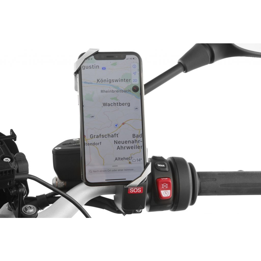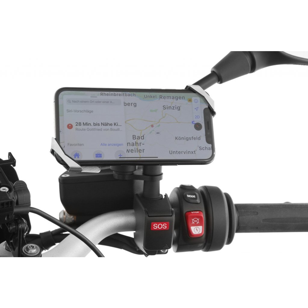 Svorka zrcátka »MultiClamp« je připevněna k levému nebo pravému zpětnému zrcátku. Slouží jako základna pro držení chytrých telefonů nebo akčních kamer.