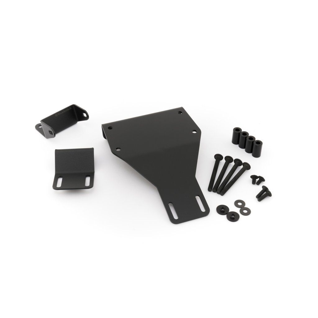 Snadno se připevňuje k držáku štítu. Základní držák lze polohovat jednotlivě a je vyroben z černé nerezové oceli s práškovým nástřikem.