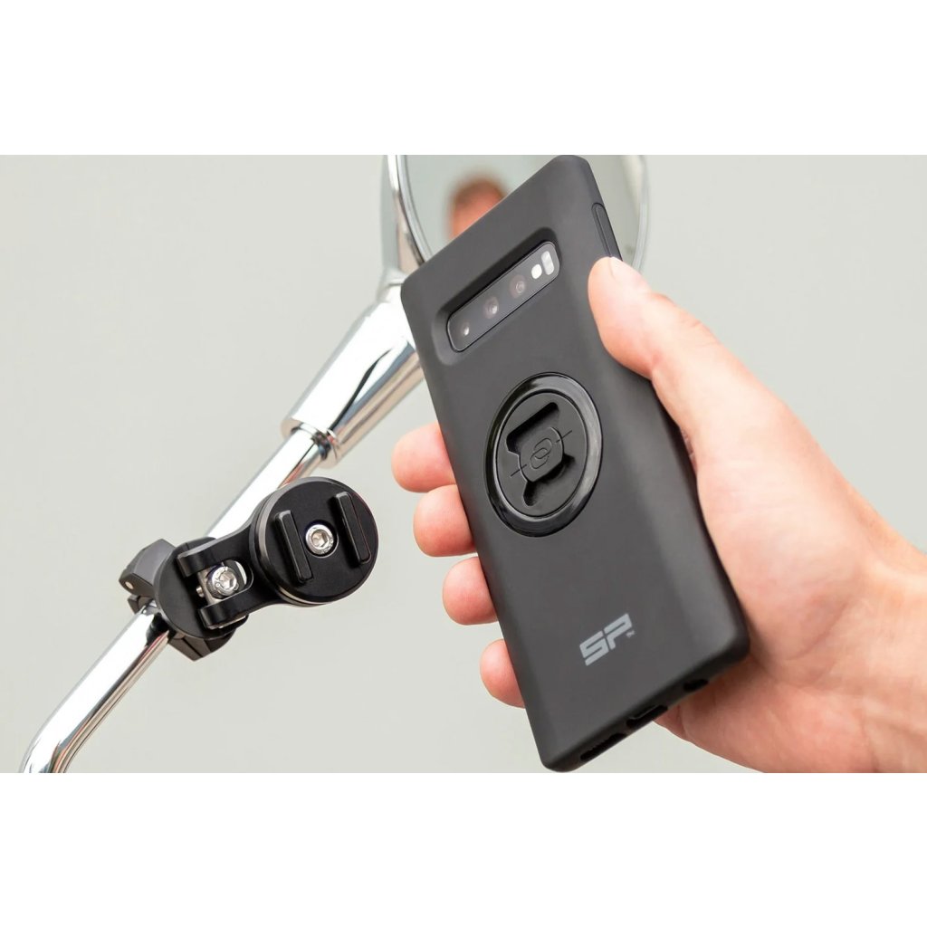 Potřebuješ během cesty na motorce navigaci? Nebo prostě jen chceš mít svůj telefon při jízdě na očích? SP Mirror Mount je perfektní řešení. Díky tomuto praktickému držáku snadno připevníte smartphone na zrcátko motorky nebo skútru. Lze připevnit na zrcátka a hrazdičky o Ø 10 – 16 mm, pasuje opravdu na většinu motorek. Přiložením Phone Case a patentovaným mechanismem twist to lock je telefon bezpečně připevněn přímo ve vašem zorném poli. Držák umožňuje rotaci o 360°,díky níž nastavíte ideální polohu zařízení. Rozhodně doporučujeme zvážit i koupi antivibračního modulu, který pojme mnohem více vibrací od motoru než samotný držák.