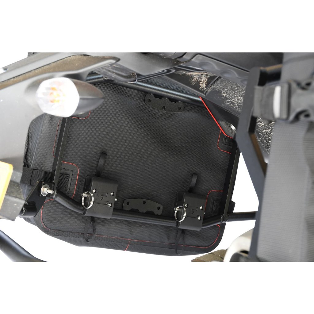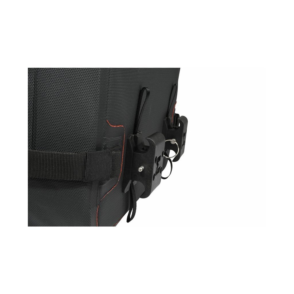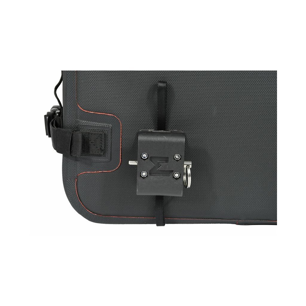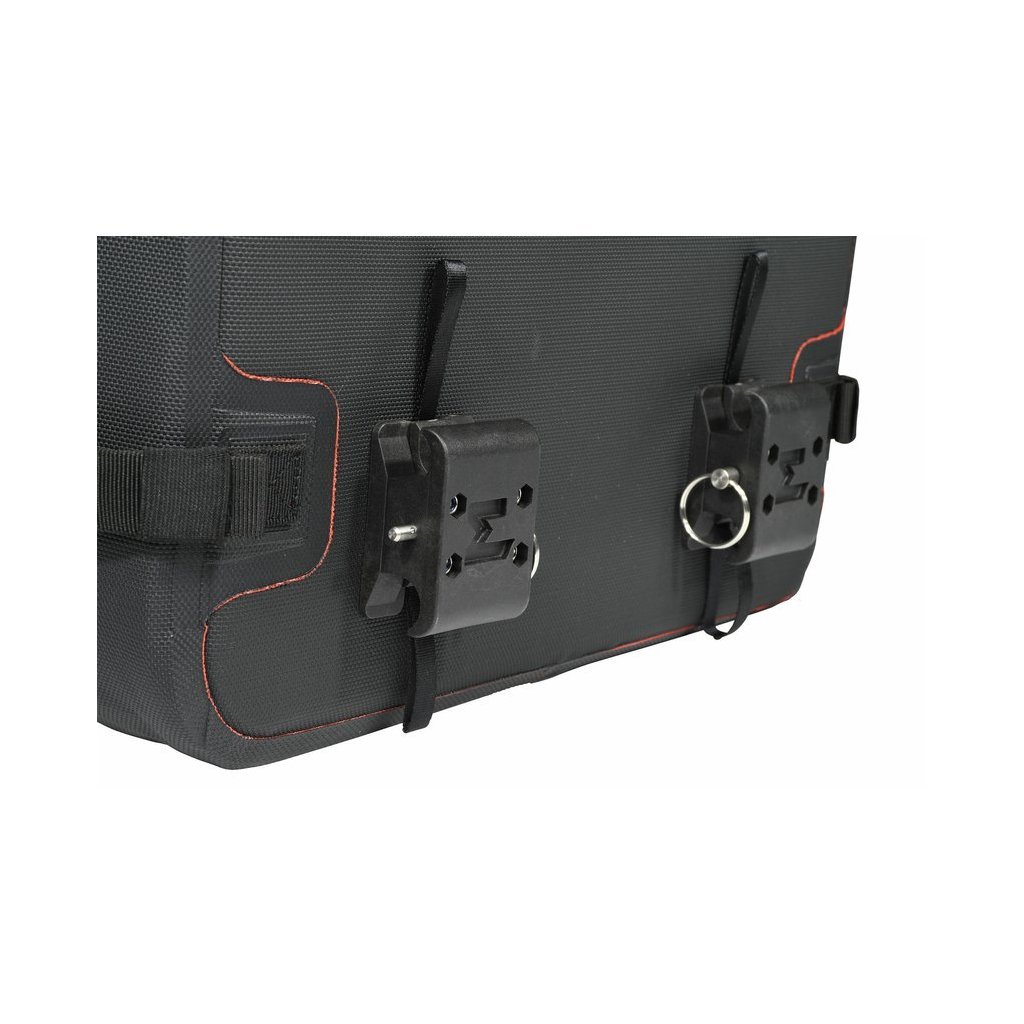 Brašny Monsoon Evo pasují téměř na všechy nosiče s průměrem trubky 18 mm. Díky nově vyvinutému inovativnímu držáku lze tašky připevnit přímo na nosič kufrů bez dodatečné montážní desky. Pokud namontujete také zámek, Monsoon Evo jsou také v bezpečí před zloději.