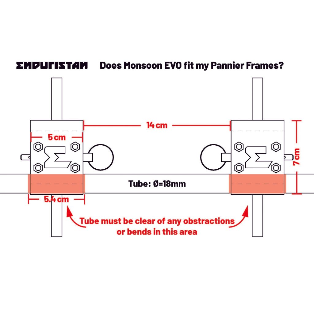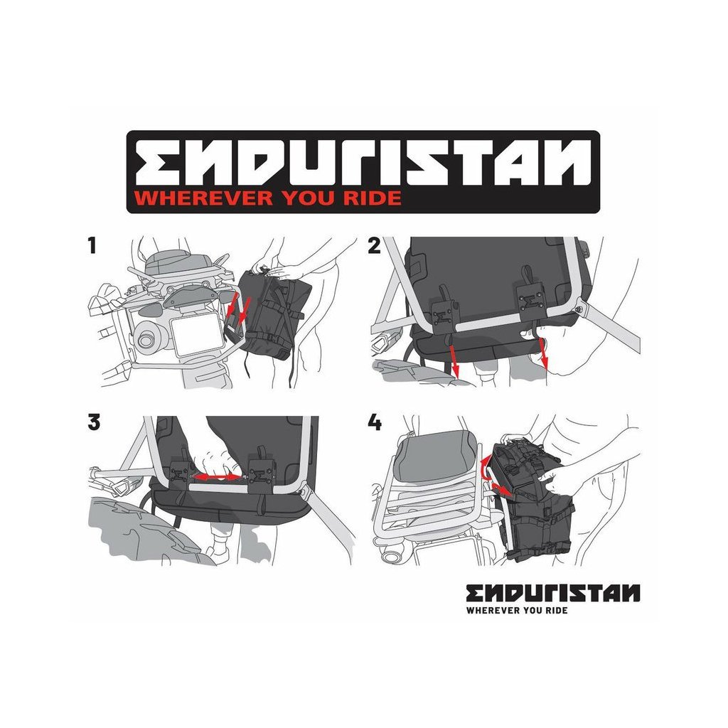 Stejně jako všechny ENDURISTAN produkty jsou Monsoon Evo navrženy pro ty nejnáročnější cesty. Držáky jsou vyrobeny z kompozitního materiálu vyztuženého vlákny, který má stejné mechanické vlastnosti jako hliník. Použita je také osvědčená 3vrstvá tkanina, která je extrémně odolná proti oděru. Spodní hrana a rohy brašen mají dodatečnou ochranu hran, aby byla vaše taška v bezpečí v případě, že vám motorka spadne - což všichni víme, že se občas stane!
