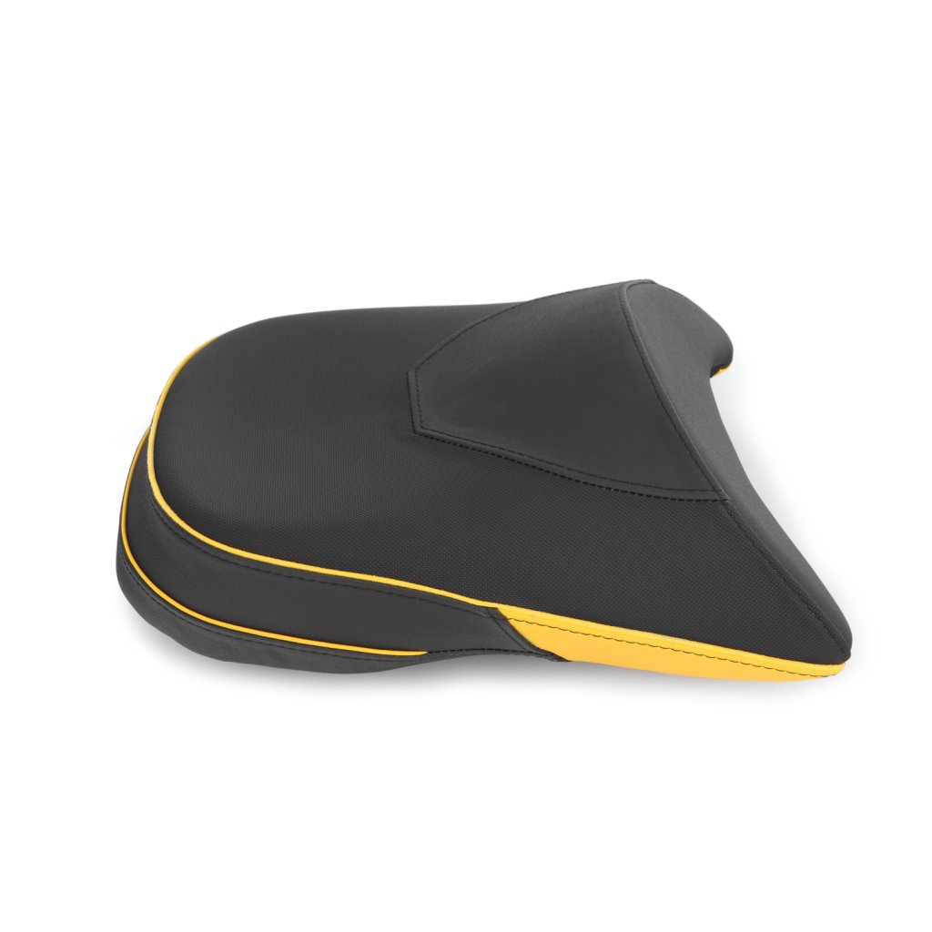 Wunderlich sedla jsou vyráběna s charakteristickým, ergonomickým 3D obrysem, který umožňuje řidiči splynout s jeho motocyklem BMW. Tvar a sklon náročně zpracovaného, progresivně konstruovaného, dvouvrstvého jádra sedla podporuje ergonomicky výhodné, a přirozené držení pánve. Takový posez je prostě uvolněný a aktivní. Není pochyb o tom, že uvolněné sezení vytváří plus v pasivní bezpečnosti. S povlakem ThermoPro je teplota sedla až o 25 °C nižší v létě na žhnoucím slunci ve srovnání s běžným, neošetřeným potahovým materiálem.
