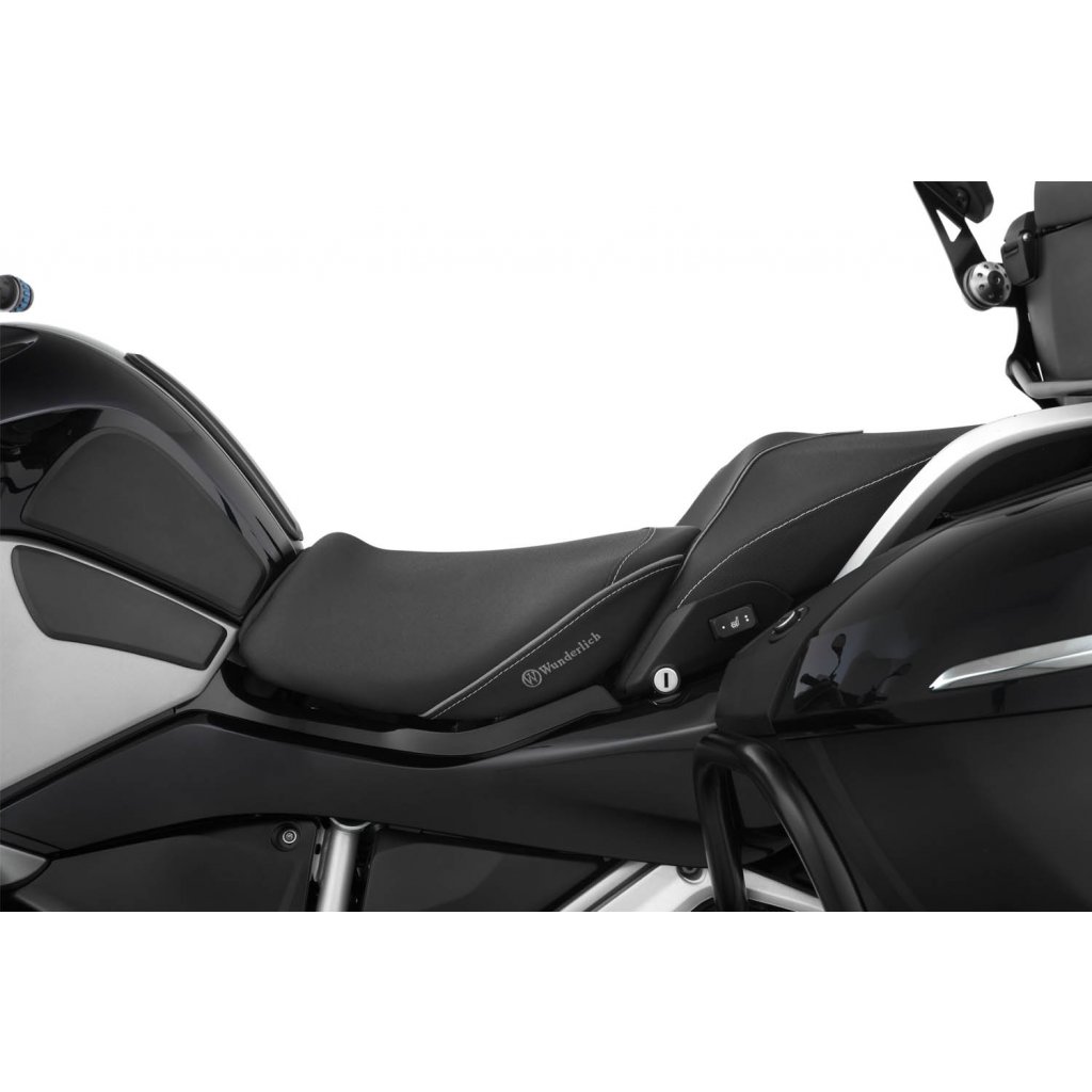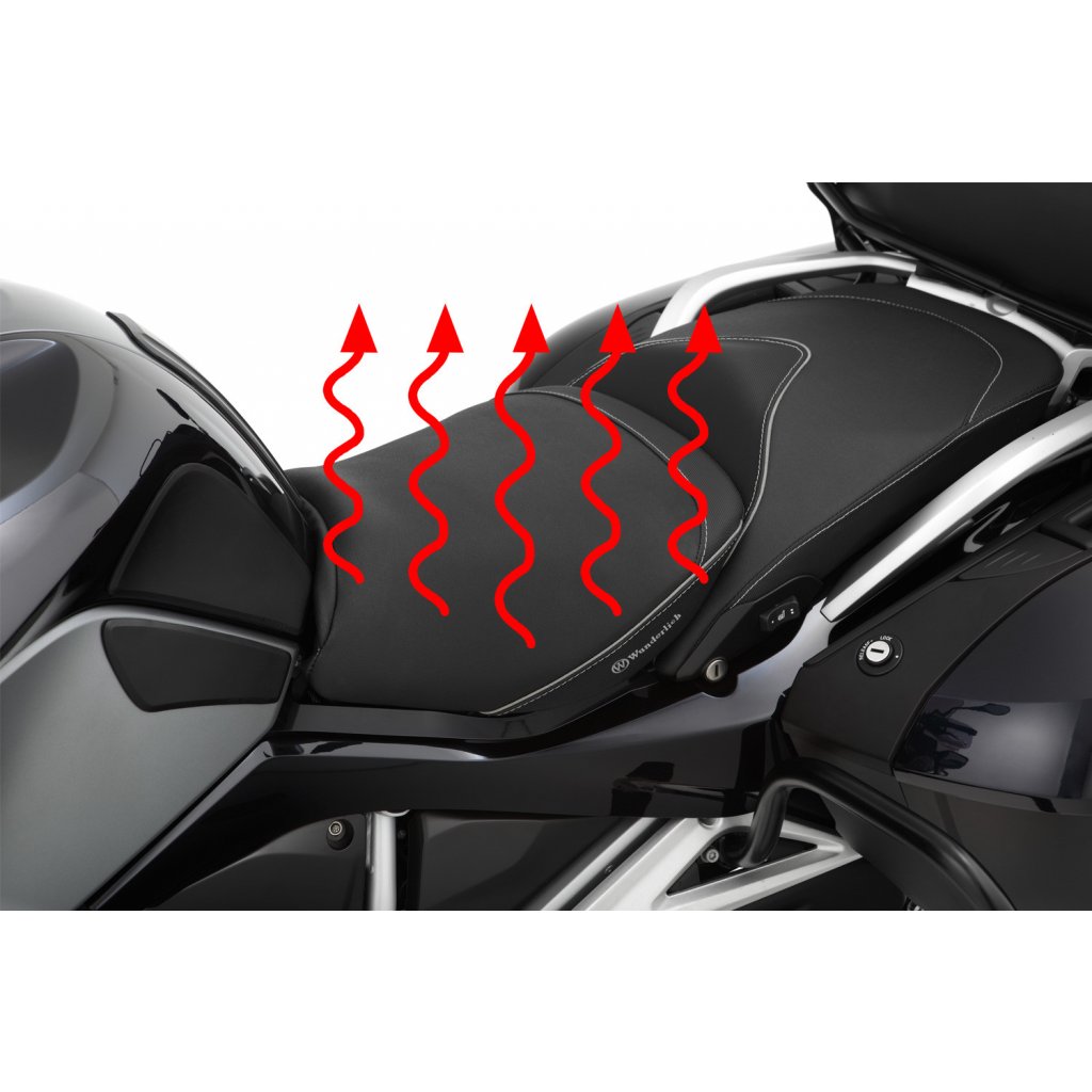 Wunderlich sedla jsou vyráběna s charakteristickým, ergonomickým 3D obrysem, který umožňuje řidiči splynout s jeho motocyklem BMW. Tvar a sklon náročně zpracovaného, progresivně konstruovaného, dvouvrstvého jádra sedla podporuje ergonomicky výhodné, a přirozené držení pánve. Takový posez je prostě uvolněný a aktivní. Není pochyb o tom, že uvolněné sezení vytváří plus v pasivní bezpečnosti. S povlakem ThermoPro je teplota sedla až o 25 °C nižší v létě na žhnoucím slunci ve srovnání s běžným, neošetřeným potahovým materiálem.