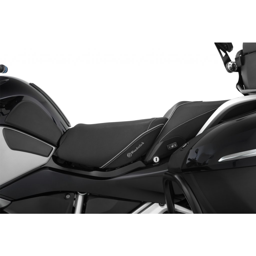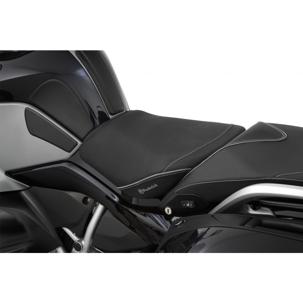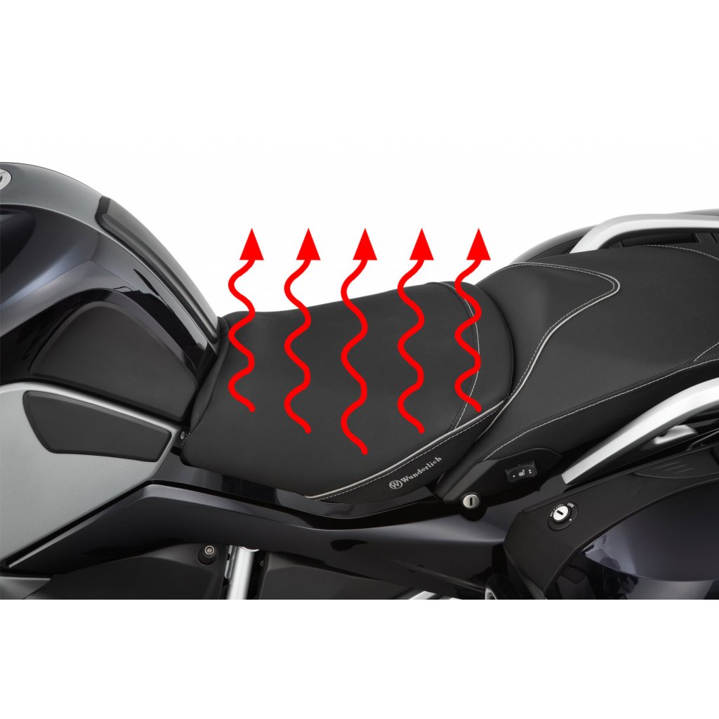Wunderlich sedla jsou vyráběna s charakteristickým, ergonomickým 3D obrysem, který umožňuje řidiči splynout s jeho motocyklem BMW. Tvar a sklon náročně zpracovaného, progresivně konstruovaného, dvouvrstvého jádra sedla podporuje ergonomicky výhodné, a přirozené držení pánve. Takový posez je prostě uvolněný a aktivní. Není pochyb o tom, že uvolněné sezení vytváří plus v pasivní bezpečnosti. S povlakem ThermoPro je teplota sedla až o 25 °C nižší v létě na žhnoucím slunci ve srovnání s běžným, neošetřeným potahovým materiálem.