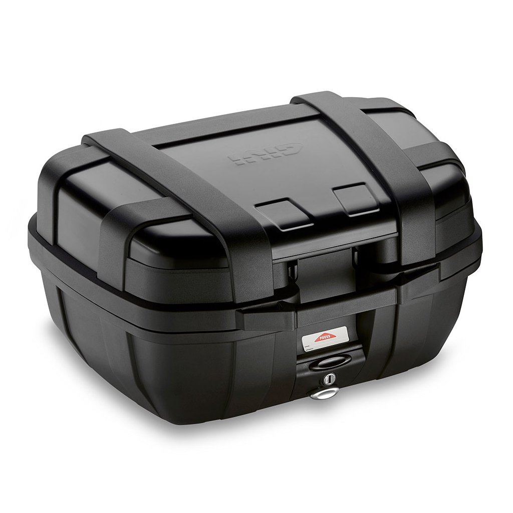 Plastový kufr s černým hliníkovým víkem, objem 52 litrů, rozměry šxvxh = 600x315x460 mm (z čelního pohledu), nosnost 10 kg, pojme 2 odklápěcí přilby. Lze použít výhradně jako horní kufr na nosiče pro kufry Monokey (PL, PLR, Monorack M5, M7, E 251). Lze kombinovat s kufry TRK 46B, TRK 35B nebo TRK 33B.