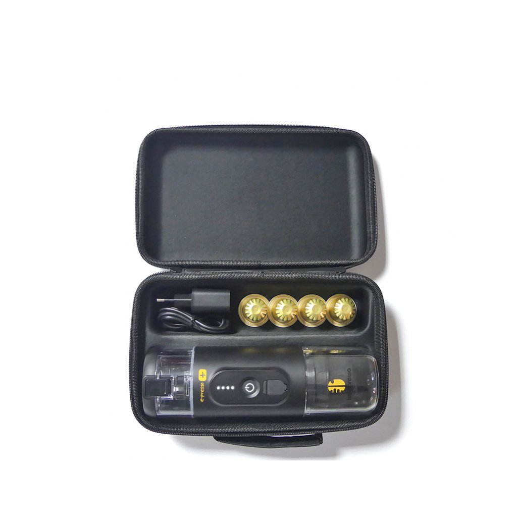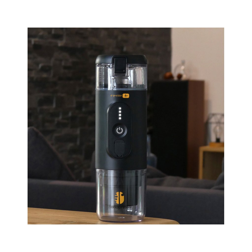 Handpresso E-Presso Plus Set je vylepšená verze kávovaru E-Presso s cestovním kufříkem. O proti své předchozí verzi se pyšní zvětšenou kapacitou zásobníku na vodu, který pojme až 110ml čerstvé vody. Kávovar se pyšní baterií Li-ion 2900mAh, který nabijete přibližně za cca 2.5 hodiny nabíjení pomocí USB-C kabelu který je součástí balení.