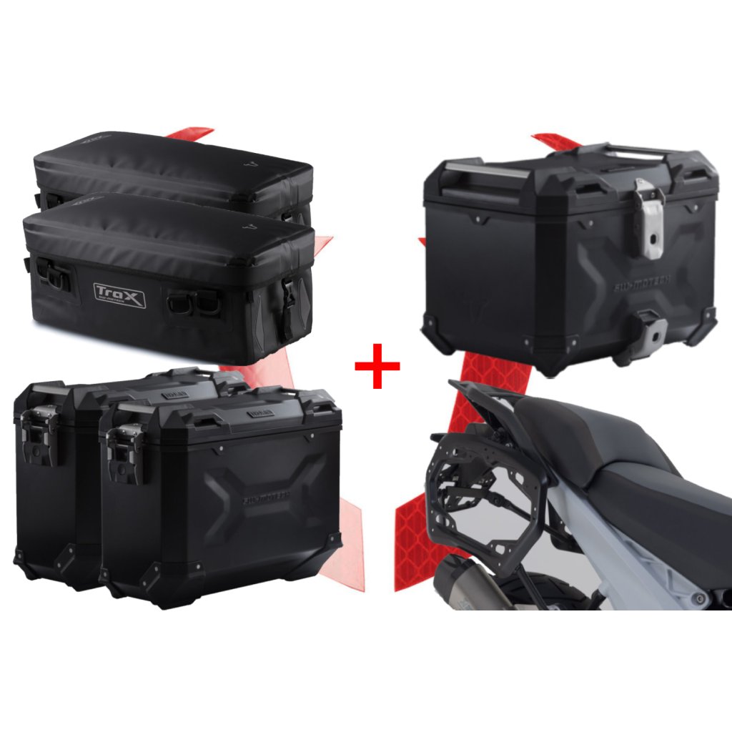 HLINÍKOVÉ KUFRY PRO BMW SW - MOTECH TRAX ADVENTURE ČERNÉ PRO NEREZOVÝ VRCHNÍ NOSIČ