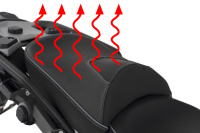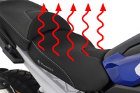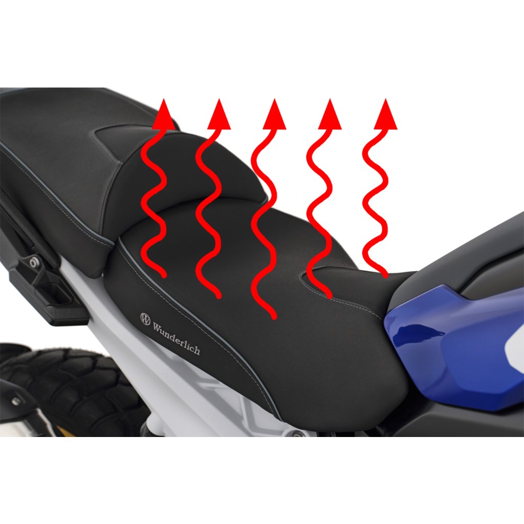 Wunderlich sedla jsou vyráběna s charakteristickým, ergonomickým 3D obrysem, který umožňuje řidiči splynout s jeho motocyklem BMW. Tvar a sklon náročně zpracovaného, progresivně konstruovaného, dvouvrstvého jádra sedla podporuje ergonomicky výhodné, a přirozené držení pánve. Takový posez je prostě uvolněný a aktivní. Není pochyb o tom, že uvolněné sezení vytváří plus v pasivní bezpečnosti. S povlakem ThermoPro je teplota sedla až o 25 °C nižší v létě na žhnoucím slunci ve srovnání s běžným, neošetřeným potahovým materiálem.