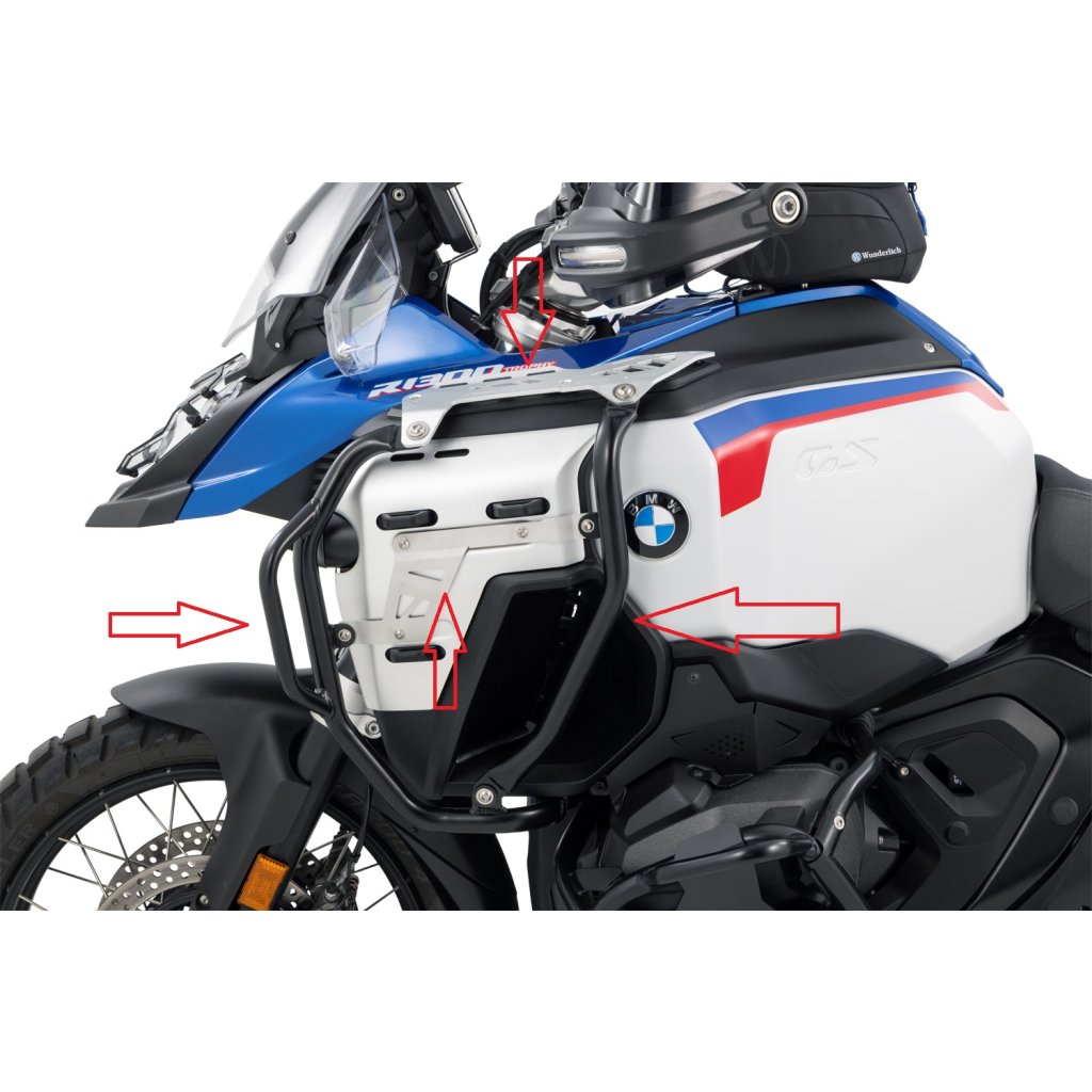 ZESÍLENÍ PRO RÁMY NÁDRŽE Wunderlich ULTIMATE plus doplňují PADACÍ RÁMY NÁDRŽE ULTIMATE a nabízejí úhledně integrovanou extra ochranu pro boky BMW R 1300 GS Adventure