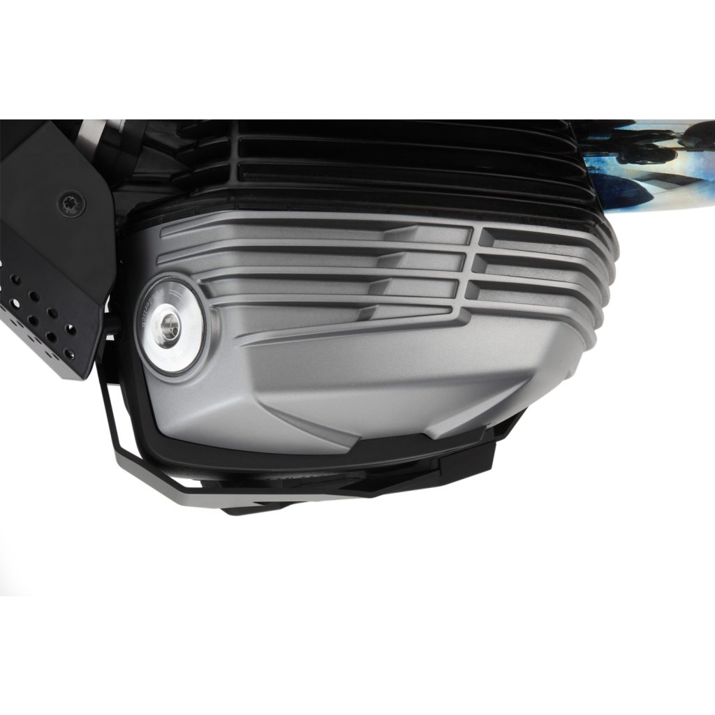 Válce boxeru BMW jsou odhaleny. Převrácení, uklouznutí, najetí na omítnutou stěnu při manévrování může snadno vést k mechanickému poškození až probroušení víka ventilu nebo alespoň k nepříjemným škrábancům. Protože jsou víka ventilů namontována pouze silově šrouby, existuje nebezpečí, že se příslušné víko ventilu v případě jakékoli síly posune vzhledem k hlavě válců a případně poškodí drahý pohon ventilu nebo upevňovací závity. Dodatečná ochrana víka ventilu je proto obzvláště důležitá. K tomu jsme vyvinuli sadu účinných chráničů. Ty se vyznačují tím, že těsně přiléhají k víku ventilu s úzkou mezerou.