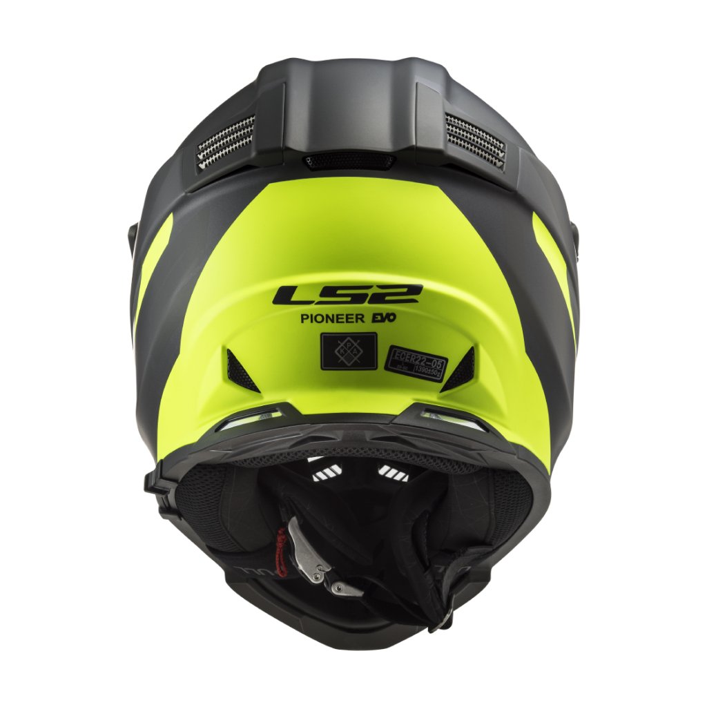 Moderní helma MX436 Pioneer EVO pro enduro, adventure, supermoto a čtyřkolky nabízí vysokou variabilitu, široké možnosti využití a atraktivní design. Vyvinutá ve spolupráci s jezdci mistrovství světa MX, enduro a supermoto, helma Pioneer EVO MX436 těží z dlouholetých úspěchů značky LS2 ve vrcholných soutěžích a dálkových rallye. Vybavená plexištítem, slunečním štítkem a navíc i integrovanou sluneční clonou umožňuje širokou variabilitu v širokém spektru podmínek, lze jí používat s plexištítem nebo MX brýlemi. Nová přepracovaná skořepina kompatibilní s moderními chrániči krční páteře je vyrobena z inovativního patentovaného materiálu Kinetic Polymer Alloy (KPA). Přepracované účinnější větrání a příjemný antialergický kompletně vyjímatelný a pratelný interiér. Emergency Release System s rychle vyjímatelnými lícnicemi umožňuje snadné sejmutí helmy v případě nouze. Rychlé zapínání ocelovou rychlosponou.