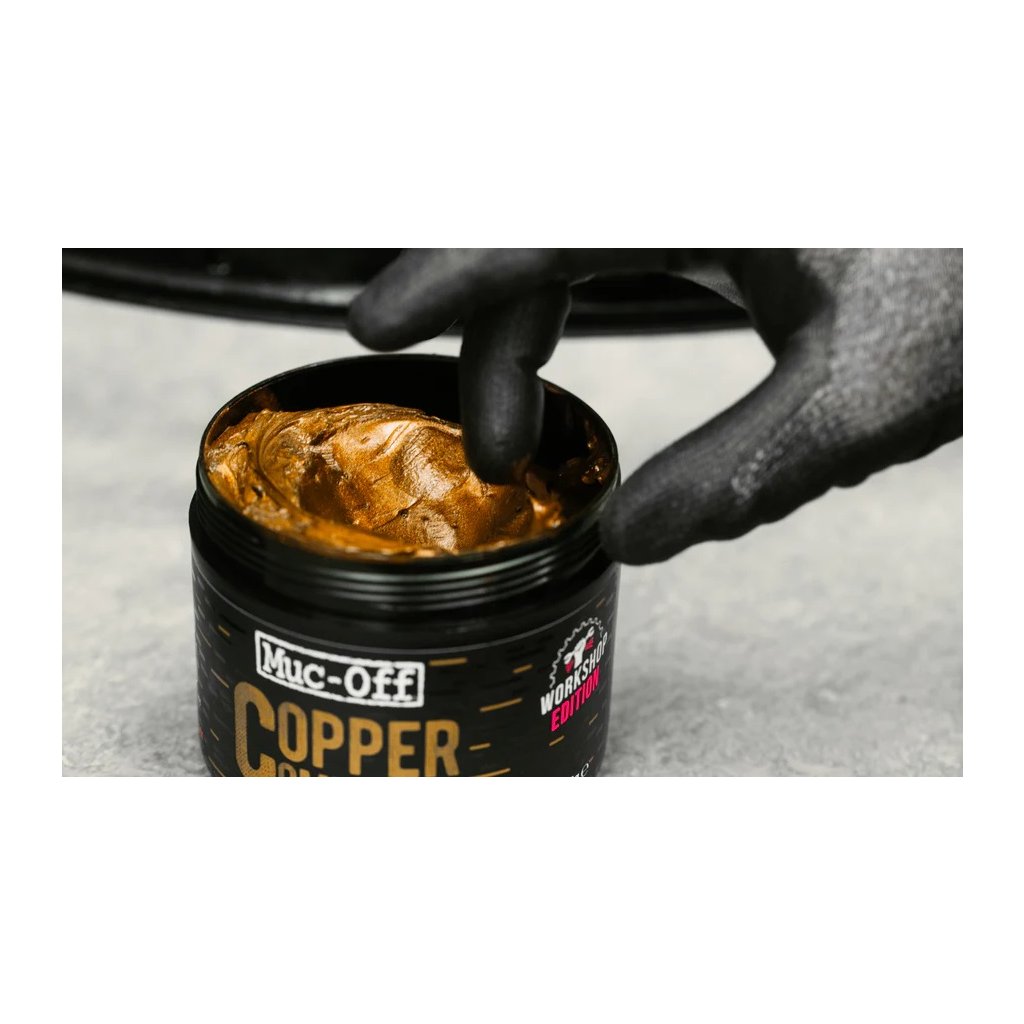 MUC-OFF COPPER COMPOUND je antikorozní plastické mazivo. Jedná se o měděnou bezolovnatou pastu pro všechny závitové spoje. Zabraňuje vzniku koroze a zamezuje zhoršení kvality závitového tření. Je ideální pro všechny spoje kovu s hliníkem. Výrazně snižuje nebo zcela odstraňuje pískání a vrzání šroubových spojů.