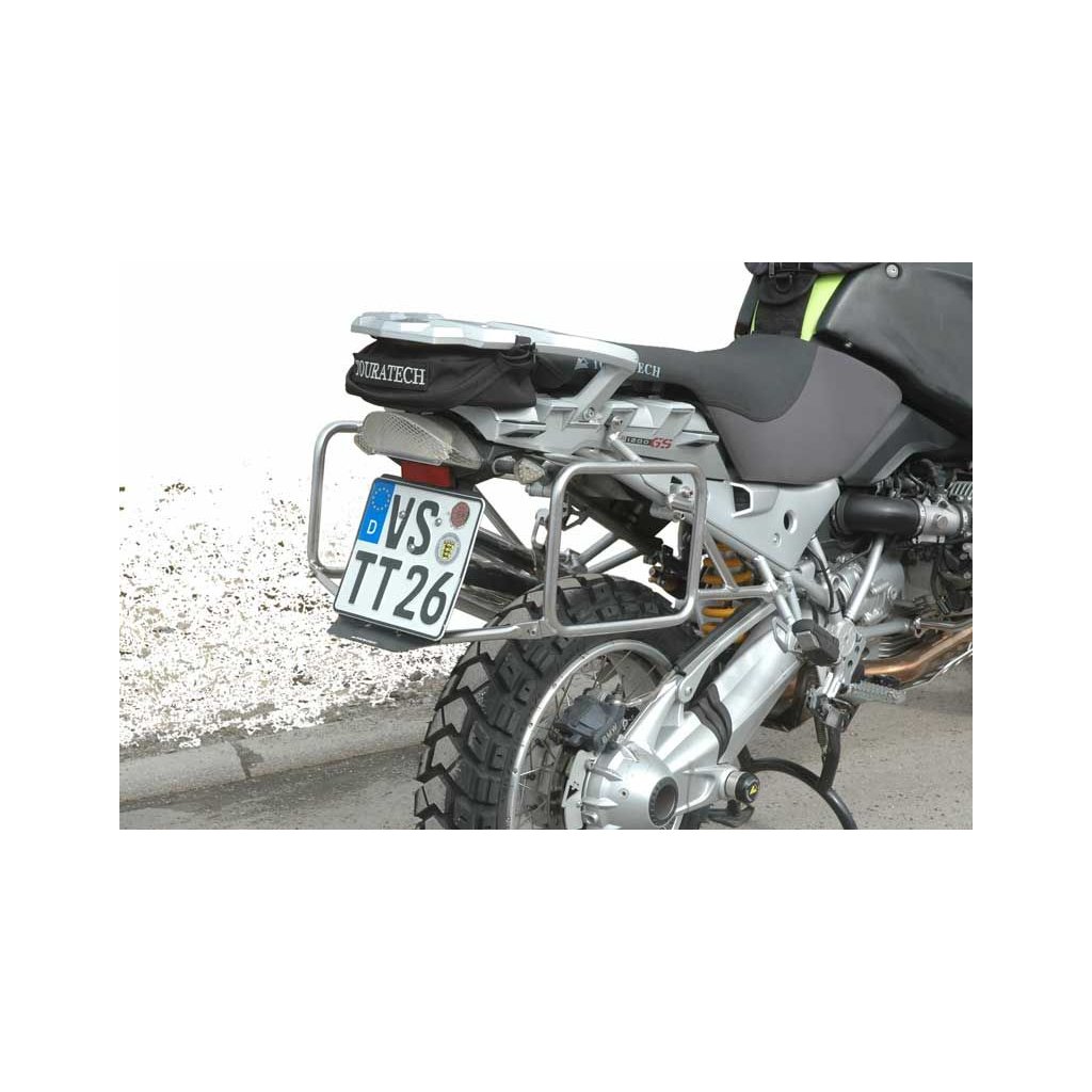 Pomocí speciálních upevňovacích svorek se nosič připevní k zadní části stojanu a stávajícím montážním bodům. Velmi robustní konstrukce s příčkou, která si poradí i s náročnými off-roady a přitom elegantně ladí s celkovým vzhledem BMW R1200GS.