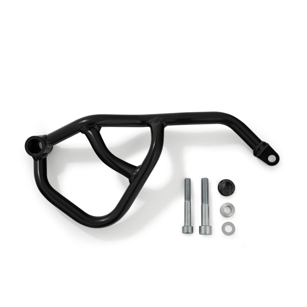 U této koncepce padacího rámu motoru byl vývoj zaměřen na maximální ochranu. Díky geometrii kompaktní ochranné lišty je odkryté vodní čerpadlo spolehlivě chráněno společně s hadicemi. Skříň spojky a pracovní válec spojky jsou však také dodatečně chráněny. Kryt motoru těsně přiléhá k motoru a díky své štíhlé struktuře získává dodatečnou stabilitu a tuhost. Držák pro levou stranu motoru je pevně přišroubován k rámu ve dvou zvolených montážních bodech. Momenty a síly, které vznikají v případě pádu nebo převrácení, jsou tedy rozloženy do dvou bodů. Tím se snižují zátěžové špičky při působení vnějších sil.