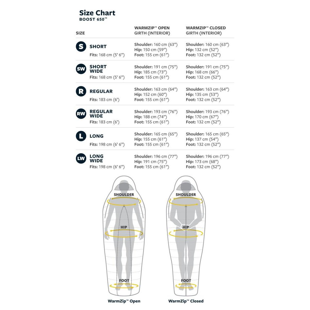 - Velký výběr velikostí Každá velikost - Small, Regular, Long - je k dispozici také v širším provedení díky rozepnutí zipu, takže získáte spací pytel přesně jaký chcete a přesně ve velikosti, kterou potřebujete.
