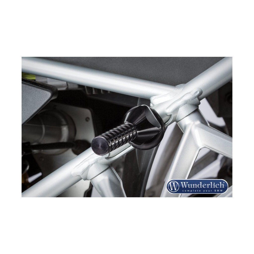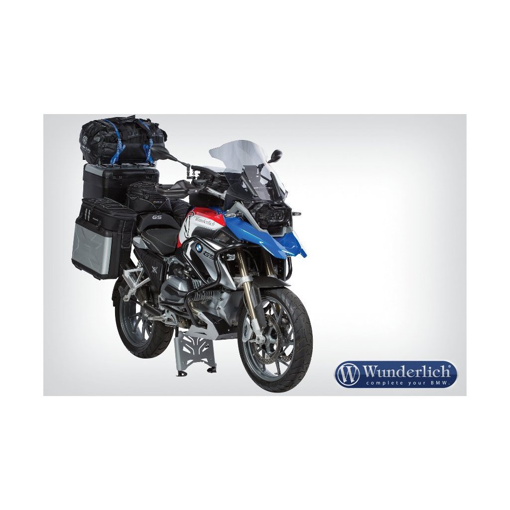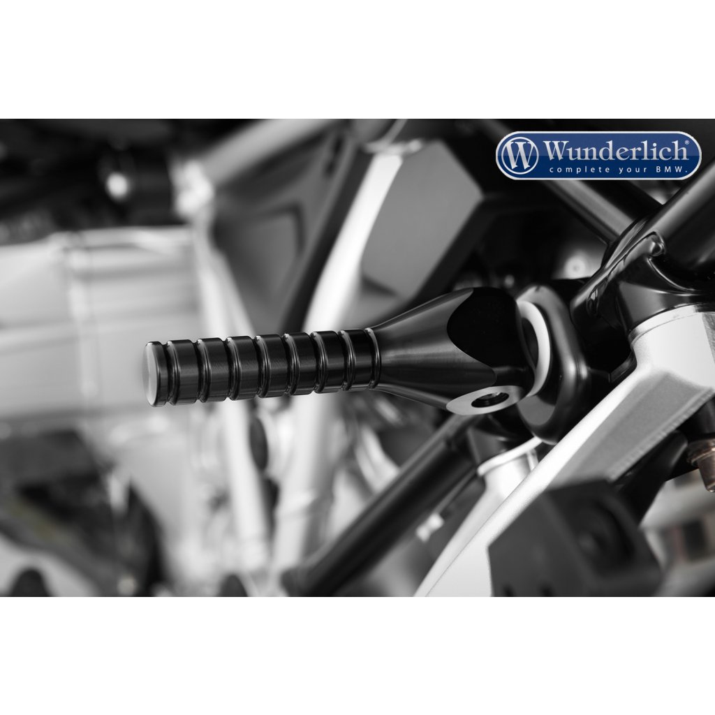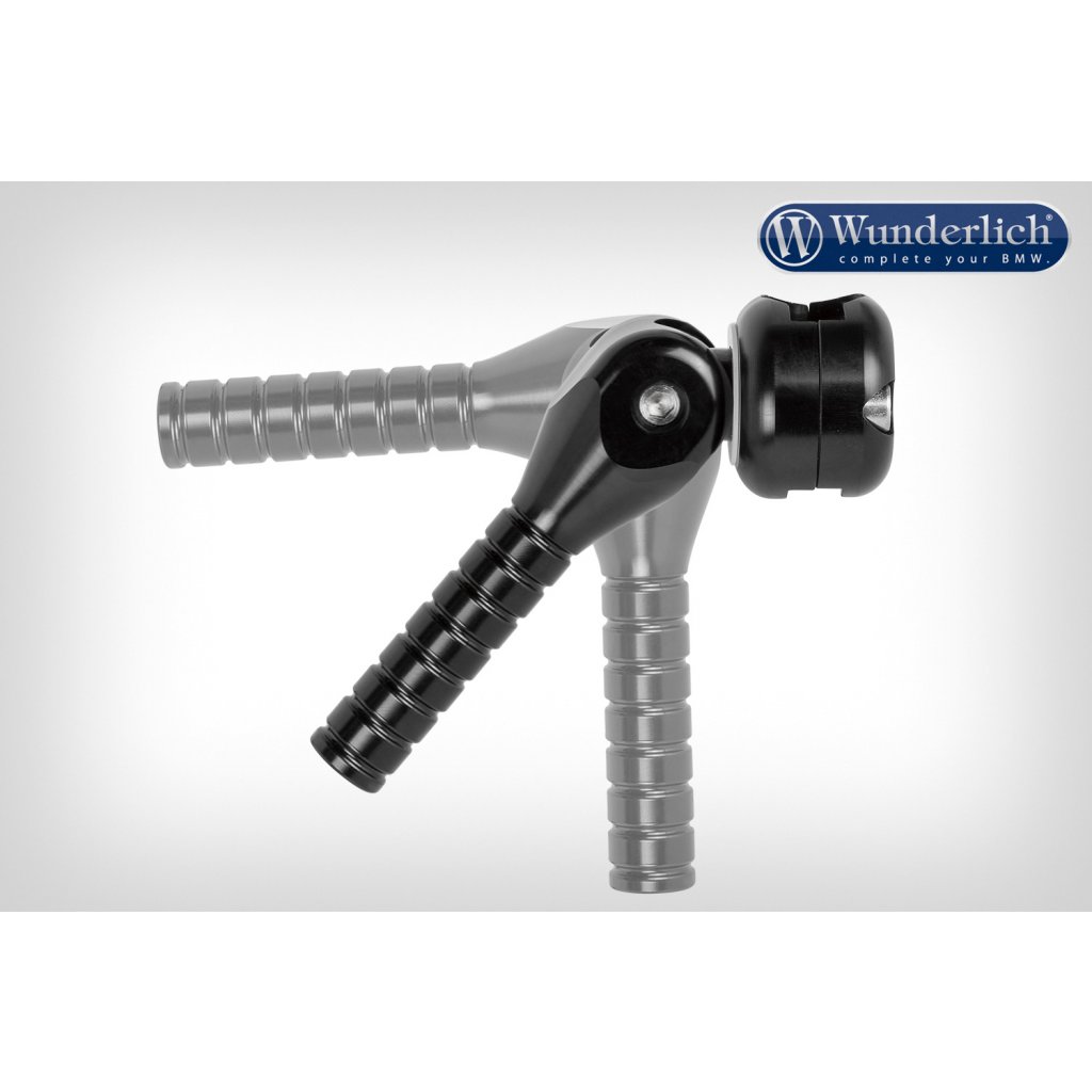 Zvednout GS na hlavní stojan není snadné, protože páka není úplně příznivá. Tato sklopná rukojeť pro zvedání, výrazně usnadňuje zvedání plně naloženého GS.