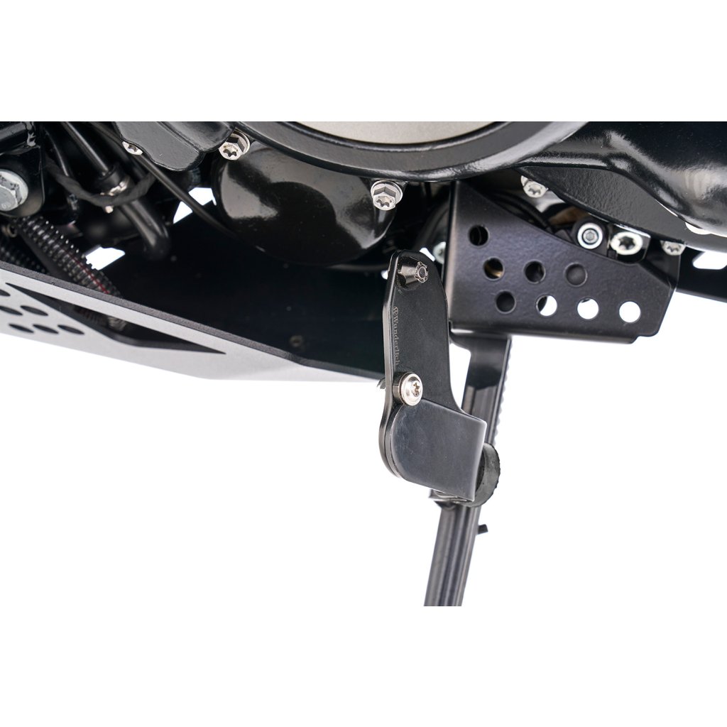 Bohužel boční stojan HD Pan America není příliš snadné vyklopit. Ovládací rameno je velmi skryté pod vodním čerpadlem. Velikost prodlužovacího ramene je navíc velmi těsná, a proto není snadno dosažitelná. Zvláště ne s motocyklovými botami! Naše skládací pomůcka zvětšuje pracovní plochu bočního stojanu a usnadňuje a ergonomizuje vyklápění.