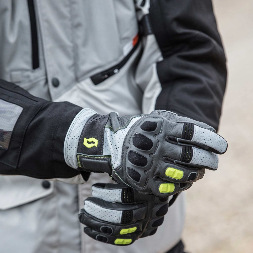 Rukavice SCOTT Sport ADV jsou vyrobeny z prémiové kozí kůže, disponují odolnými chrániči kloubů, páskem na manžetě a vodivým prvkem na ukazováčku. Díky této kombinaci budete perfektně vybaveni na vaše příští dobrodružství