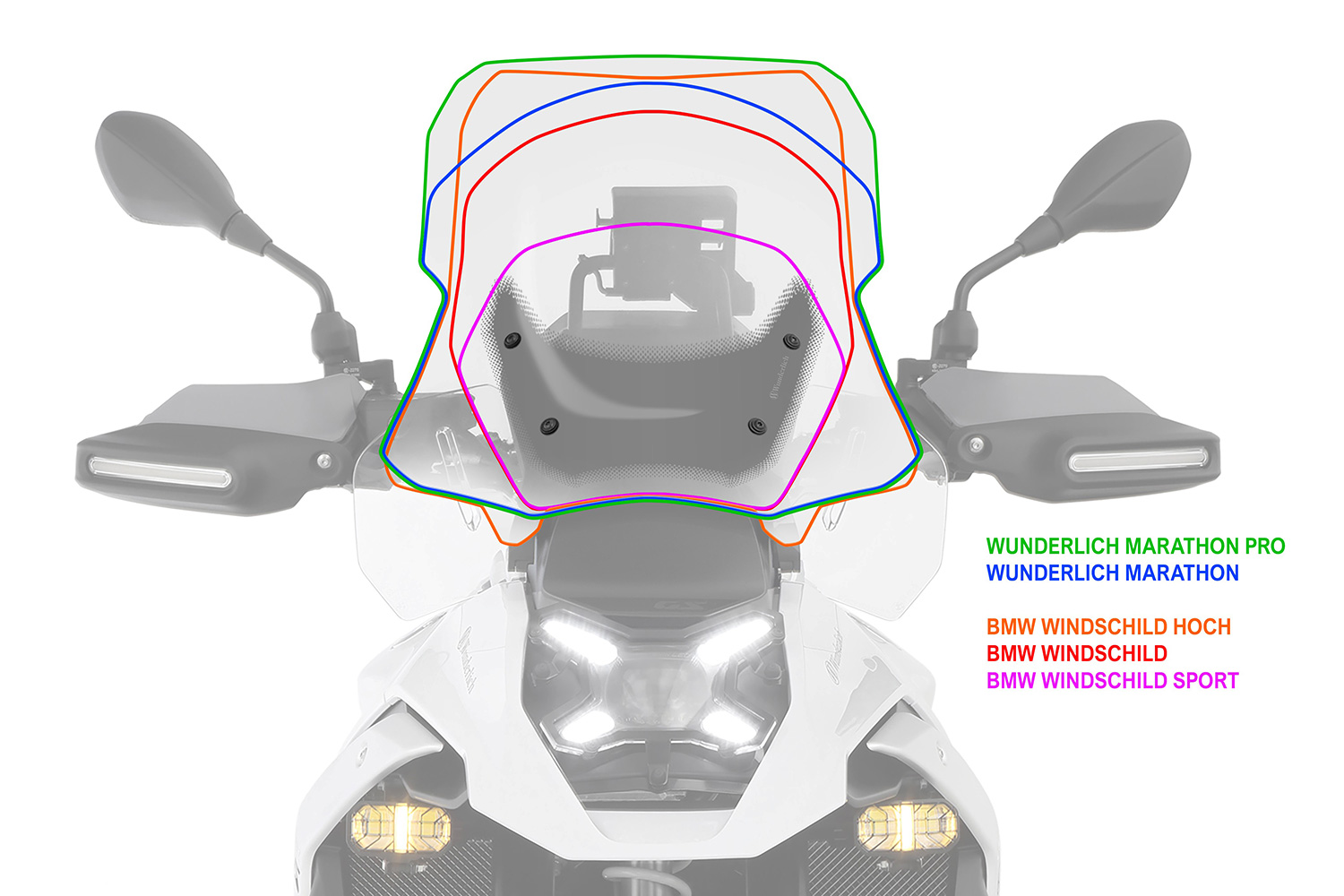 Osvědčené produktové vlastnosti štítů MARATHON s jejich účinnou ochranou proti větru a povětrnostním vlivům, jejich ergonomií a výrazným komfortem na dlouhé vzdálenosti zajišťují pohodovou jízdu na vašem BMW R 1300 GS a zároveň vyšší pasivní bezpečnost. Díky svým rozměrům nabízí optimální úlevu od tlaku větru na hlavu, horní část těla a ramena se znatelně sníženými turbulencemi. To znamená, že štít MARATHON projevuje svůj plný potenciál i na velkém GS, na dlouhé i krátké tratě a v každém ročním období. Nabízí maximální ochranu a perfektní ergonomii pro každou velikost těla.