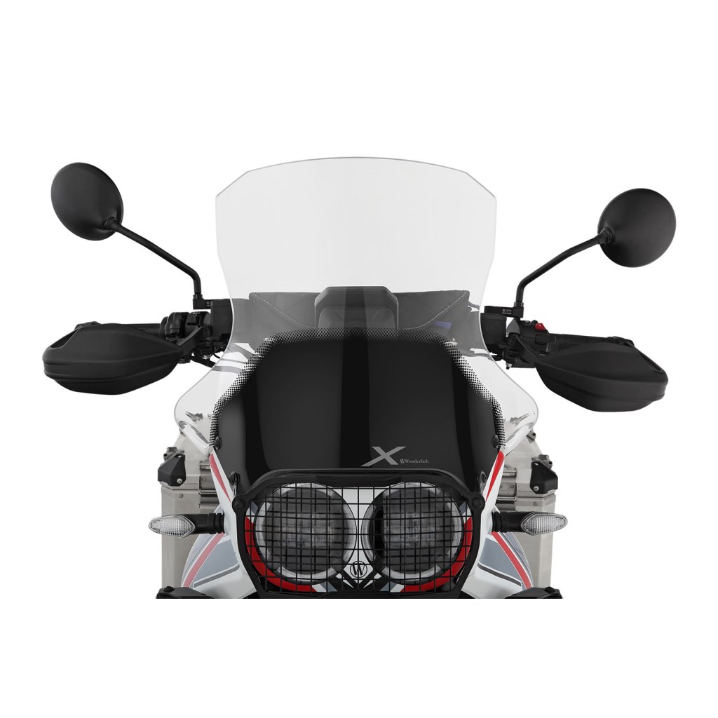 Vysoce kvalitní zpracování lze rozpoznat na první pohled. Odolné proti poškrábání, benzínu a UV záření, síla 5 mm. Jasná průhlednost bez zkreslení a optických chyb, které dráždí. Ručně leštěný, obvodový okraj tabule, který tak nepotřebuje ochranu hran. To je jediný způsob, jak může čelní sklo nabídnout aerodynamické výhody, jako je snížení hluku a vibrací větru a nerušený výhled do okolí. To vše umožňuje ležérní, extrémně uvolněné a vzpřímené sezení.