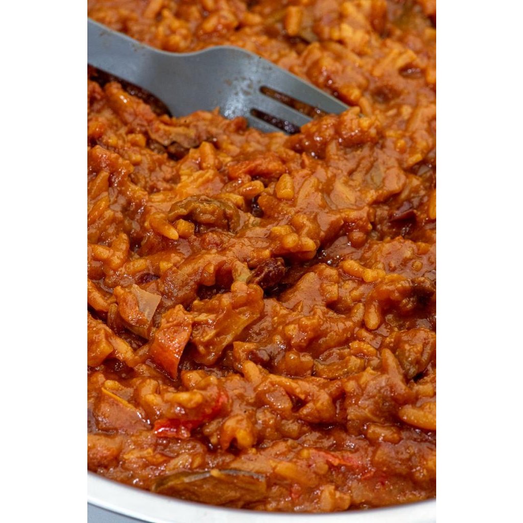 Dlouhozrnná rýže (23%) / červené fazole (13%) / květák (13%), paprika (13%) / rajčata (13%) / cibule (10%) / rajčatový protlak, řepkový olej, tmavá hořká čokoláda (cukr, kakaová hmota, kakaové máslo, emulgátor, vanilková příchuť), Chipotle Chilli pasta (mletý Chipotle, cukr, vinný ocet, sůl), kukuřičná mouka, sůl.