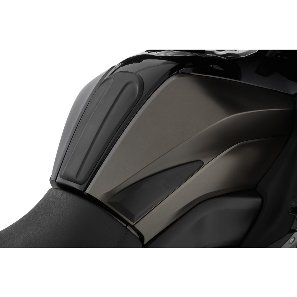 Sada tankpadu je přesně přizpůsobena konstrukci stroje. Podložky účinně chrání všechna kontaktní místa na nádrži před poškrábáním nebo oděrem. Zároveň zlepšují přilnavost kolen a poskytují znatelně lepší kontakt s motocyklem při jízdě díky zvýšené přilnavosti. To výrazně zvyšuje zážitek z jízdy a potěšení z jízdy. Materiál je vyroben z kvalitního protiskluzového černého plastu, který tlumí nárazy a má lehce zrnitou texturu. Podložky jsou samolepicí a snadno se nanášejí.