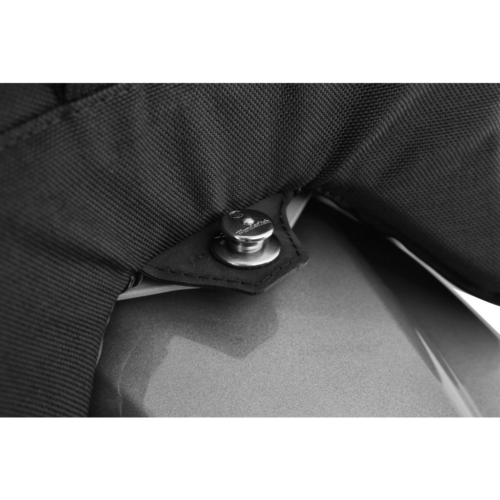 Ideální řešení pro každodenní cestu, díky praktickým rychlouzávěrům TENAX lze tašku na nádrž rychle a snadno upevnit a uvolnit, aby se odnesla. Sportovní kompaktní tvar zaručuje úplnou svobodu pohybu a žádné omezení pohledu na na přístroje, úhel řízení není narušen.