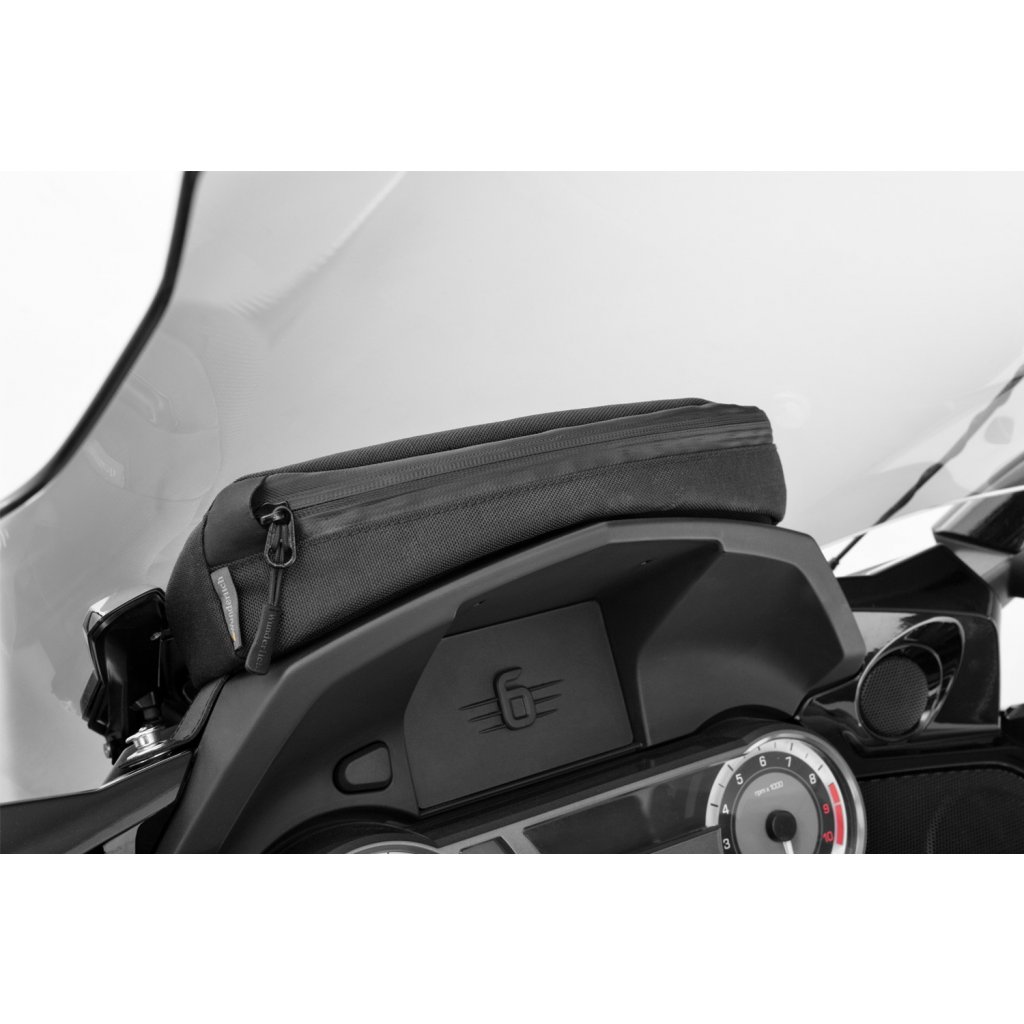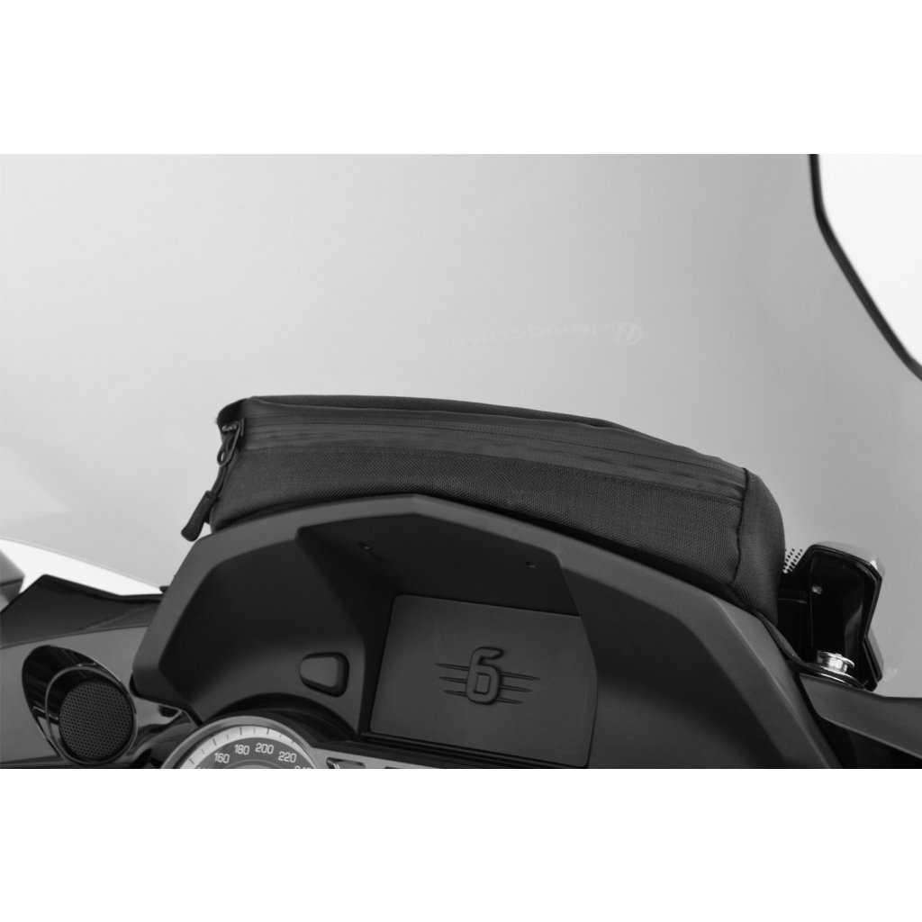 Rafinovaná a přizpůsobená taška Wunderlich naplní nevyužitý prostor mezi štítem a krytem přístrojové desky přesně a nenápadně.