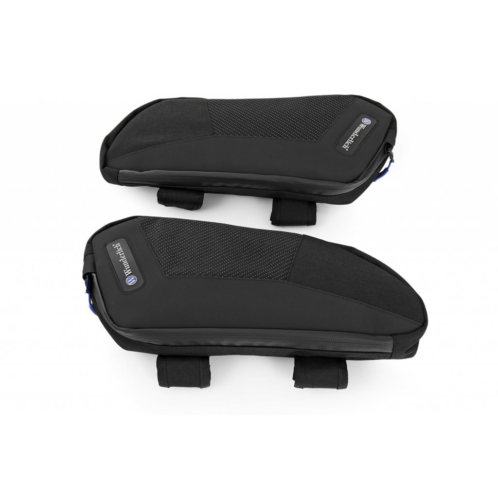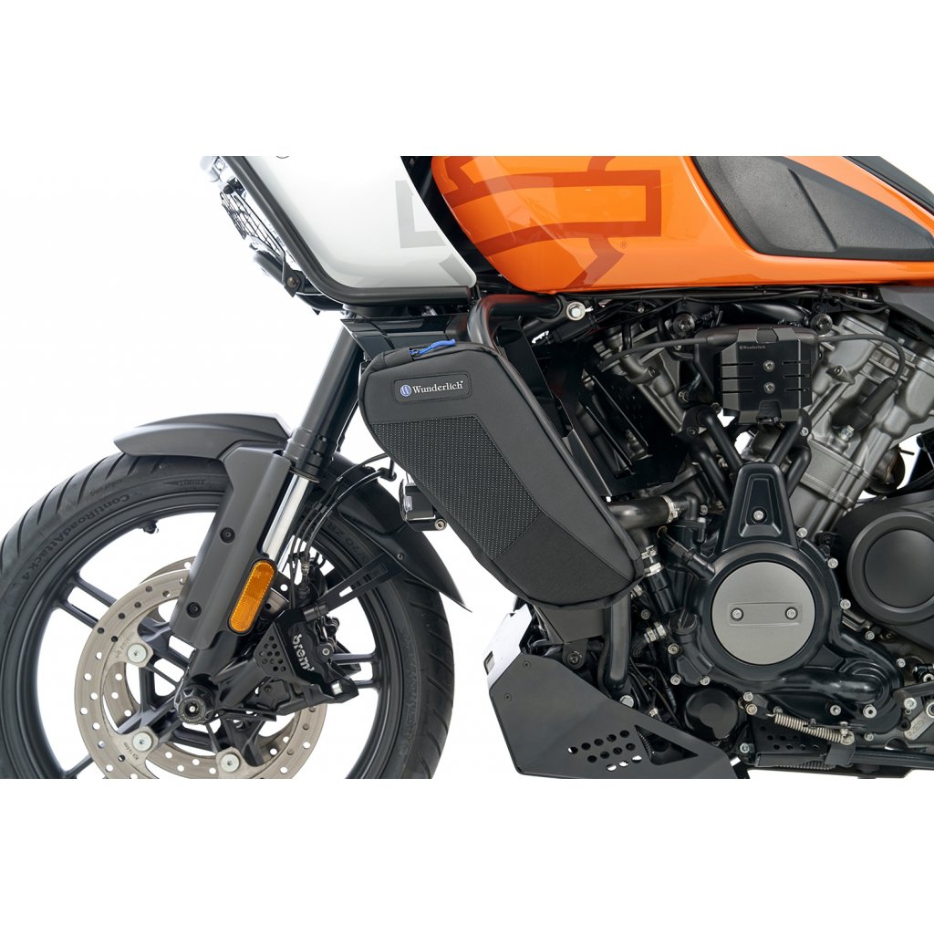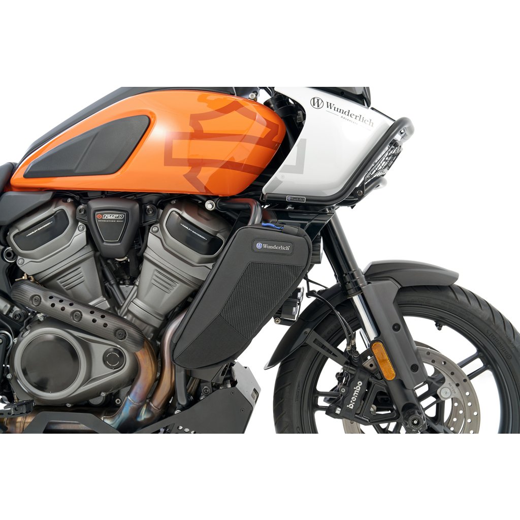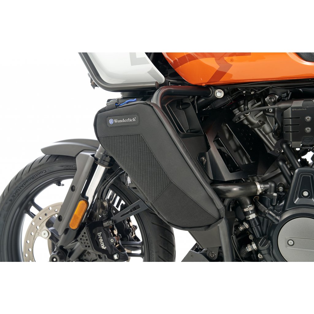 Tašky Wunderlich na rámy motoru jsou ideální pro vše, co chcete mít na cestách na dosah: papíry, smartphone, sluneční brýle, klíče, multifunkční nářadí atd. Upravili jsme je na míru, aby se vešly na originální Pan America ochranné lišty motoru. Lze je snadno a bezpečně připevnit k rámu.