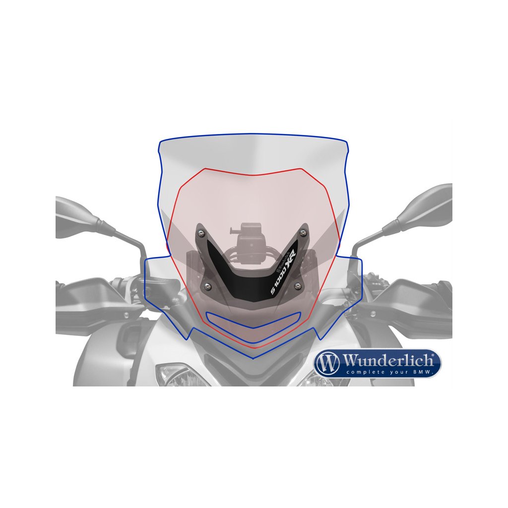Toto čelní sklo je ve spodní oblasti výrazně širší a celkově vyšší. Tento důmyslný design chrání před povětrnostními vlivy a tlakem větru. Ve spodní části jsme také dali oknu větrací otvor, který působí proti turbulenci a uklidňujícímu proudění vzduchu. To nejen dělá XR mnohem vhodnějším pro velké vzdálenosti, ale také uvolňuje jízdu na denním turné. I v nejnižší poloze nabízí tento panel dokonalou ochranu proti větru.