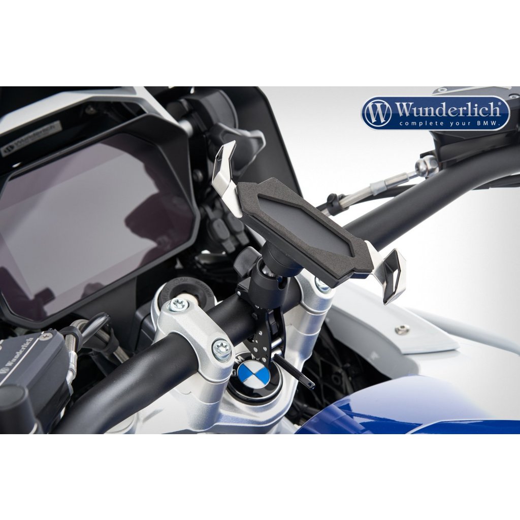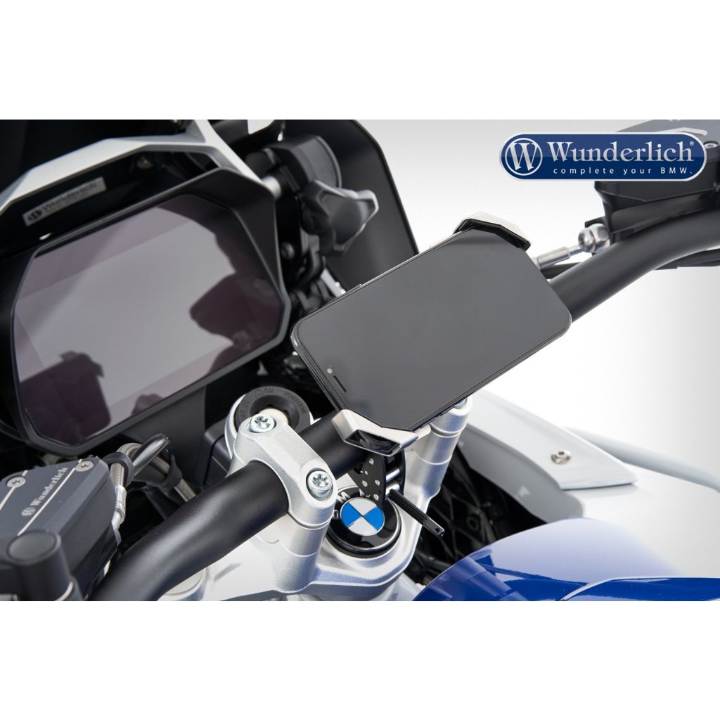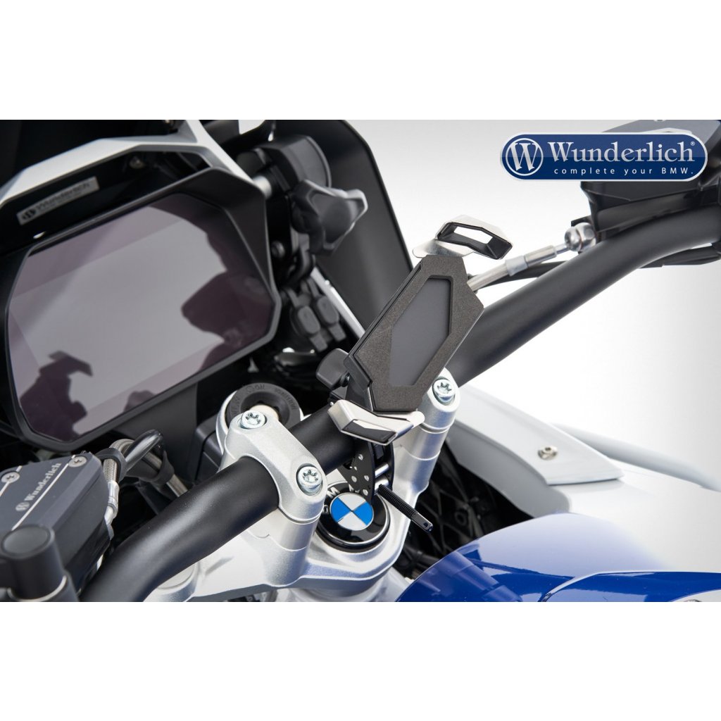 Inovativní, univerzální držák smartphonu pro připevnění řídítek ve spojení s univerzálním držákem »MultiClamp« (45155-002), je plynule nastavitelný a vhodný pro smartphony o délce 135 až 180 mm. Příslušný smartphone je bezpečně držen tvarovým způsobem ve dvou úhlopříčně protilehlých rozích. Samotná nosná plocha je opatřena prvky z pěnové pryže, takže je smartphone chráněn a chráněn před vibracemi. Svorku lze bezpečně zajistit. Držák smartphonu je připojen k univerzální svorce »MultiClamp« pomocí rychloupínacího systému. Úhel (plynulý) a orientaci smartphonu ve formátu na výšku nebo na šířku lze nastavit individuálně.