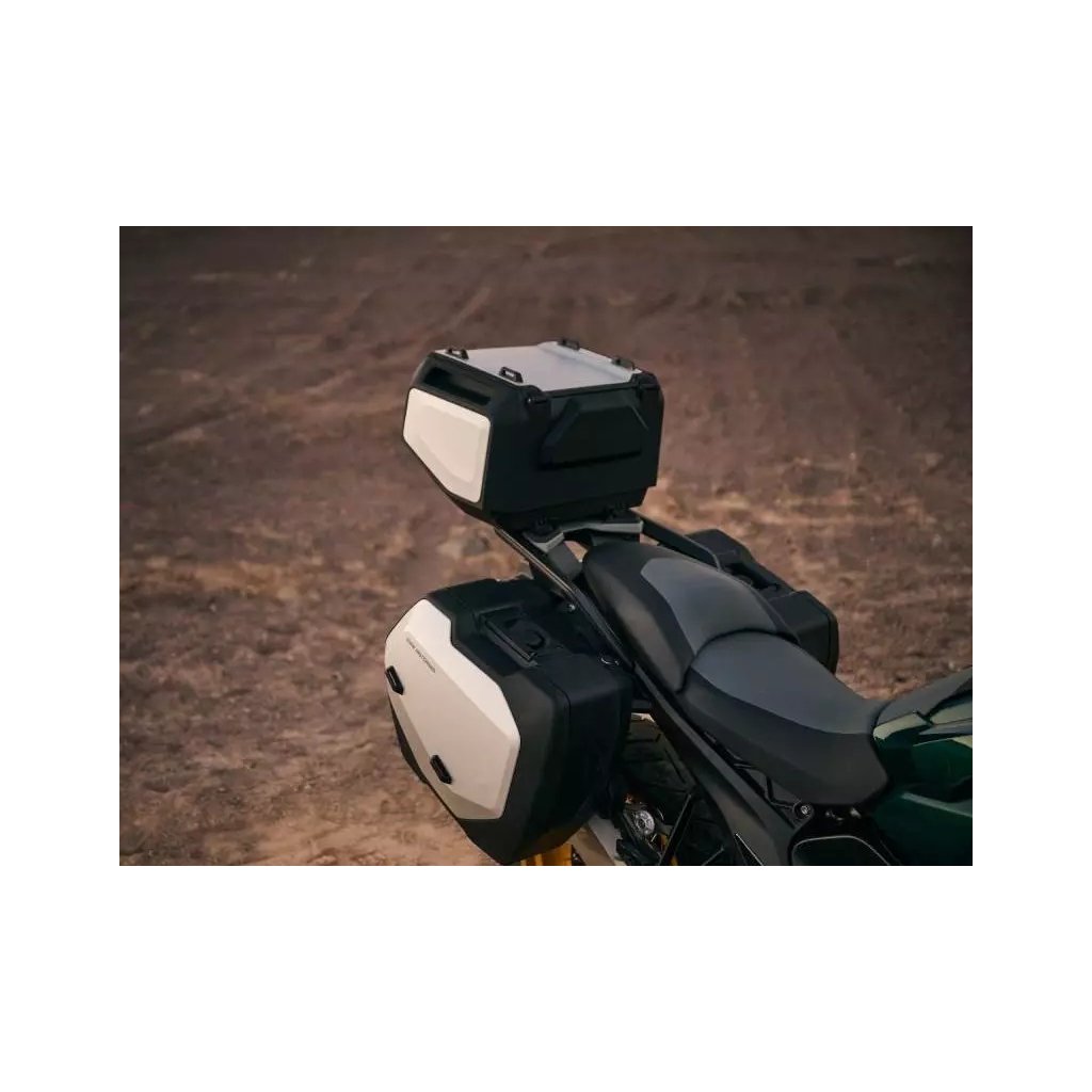Horní kufr Vario-Topcase s objemem 28–36 litrů zaujme elektrickými funkcemi jako centrální zamykání, osvětlení a USB port pro dobíjení. Objem lze plynule nastavovat v několika krocích pomocí otočného ovladače. Horní kufr je voděodolný a má praktickou vnitřní tašku. Kryty z eloxovaného hliníku jsou velmi atraktivním designovým prvkem.