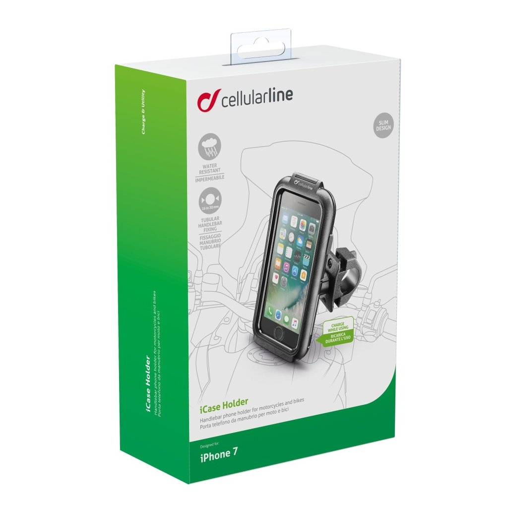 je určeno do extrémních situací, kde dokonale ochrání přístroj. Voděodolné pouzdro (IPX4) je přizpůsobené pro Apple iPhone 7. Vrchní strana vyrobená z elastického průhledného materiálu dokonce chrání displej přístroje před poškozením, či vodou. Speciální úprava zajišťuje pohodlné ovládání přístroje, zároveň je přizpůsobena i pro ovládání dotykového displeje iPhonu. Sada obsahuje držák na řídítka o průměru 16 - 30mm. Ideální společník pro jízdu na kole a motorce.