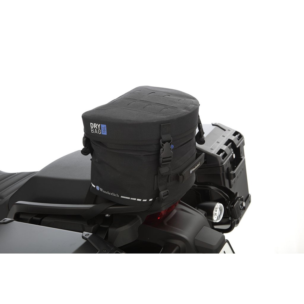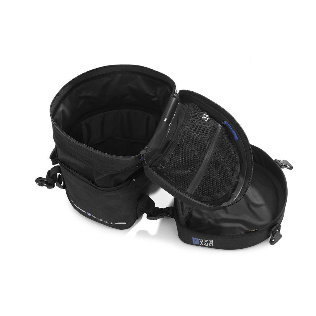 Nahoře jsou DRYBAGY uzavřeny dalším integrovaným koncovým uzávěrem, který je vyroben stejným způsobem jako samotný vak na nádrž. Ochranný kryt pokrývá také horní část tašek a zipy. Tato konstrukce zajišťuje absolutní vodotěsnost.
