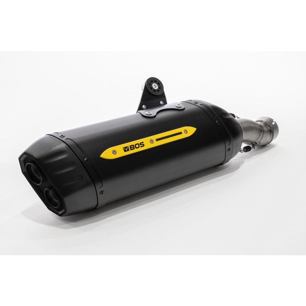 Zadní tlumiče výfuku BOS jsou kompaktnější a lehčí než standardní výfukové systémy. Optimalizuje se křivka výkonu i točivého momentu. Tupý, jadrný a velmi "dospěle" znějící zvuk je charakteristickým rysem BOS. Každý zadní tlumič výfuku je speciálně homologován pro příslušný model motocyklu. To zaručuje absolutní potěšení z jízdy bez nepříjemných následků.