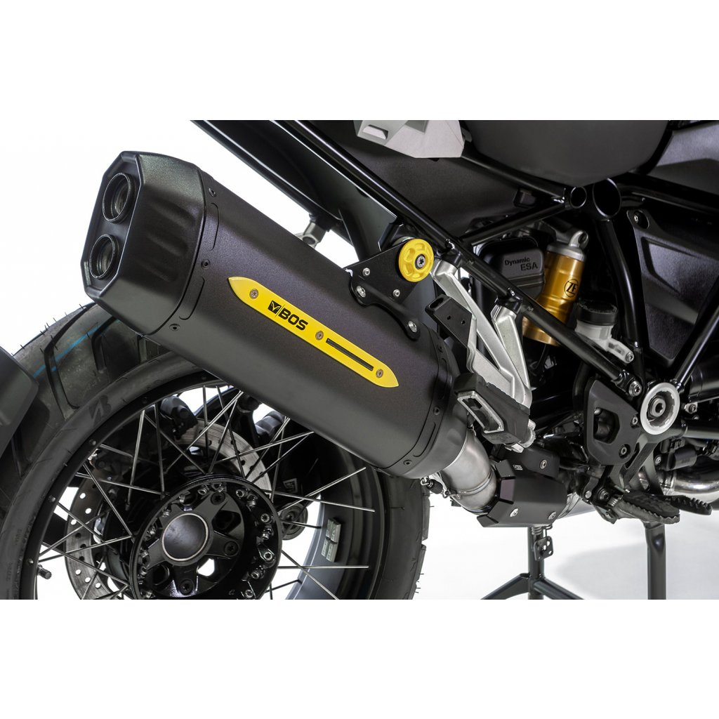 Tlumič výfuku BOS Desert Fox dokonale zapadá do designu BMW R 1250 GS + Aventure.