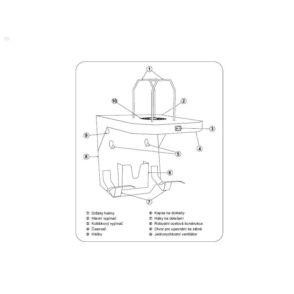 DRŽÁK PŘILBY S VĚŠÁKEM NA OBLEČENÍ A PŘIHRÁDKOU NA DOKLADY