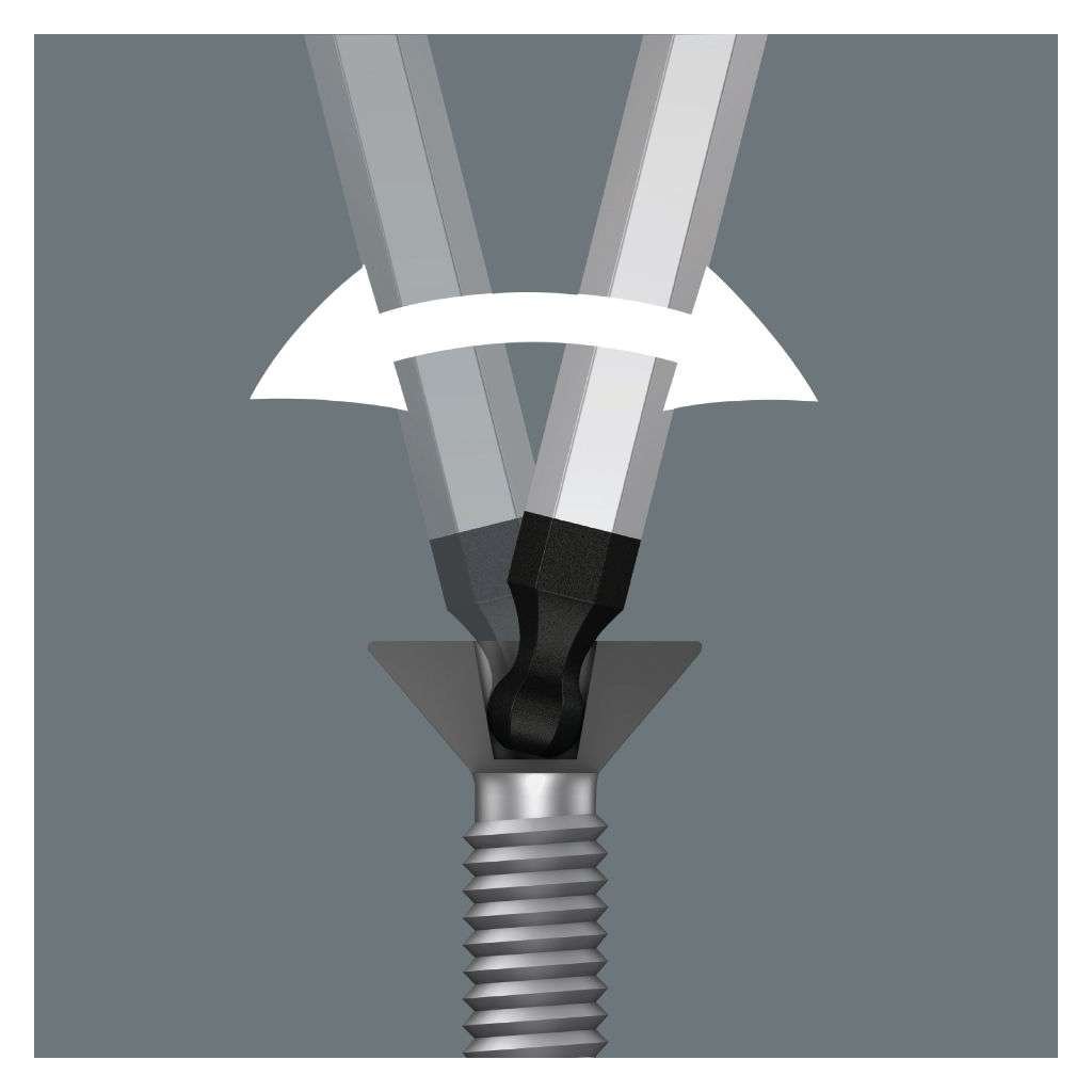 Díky kulovitým funkčním profilům je možné vychýlení i naklonění osy nářadí vůči ose šroubu, takže lze šroubovat takříkajíc "za rohem".