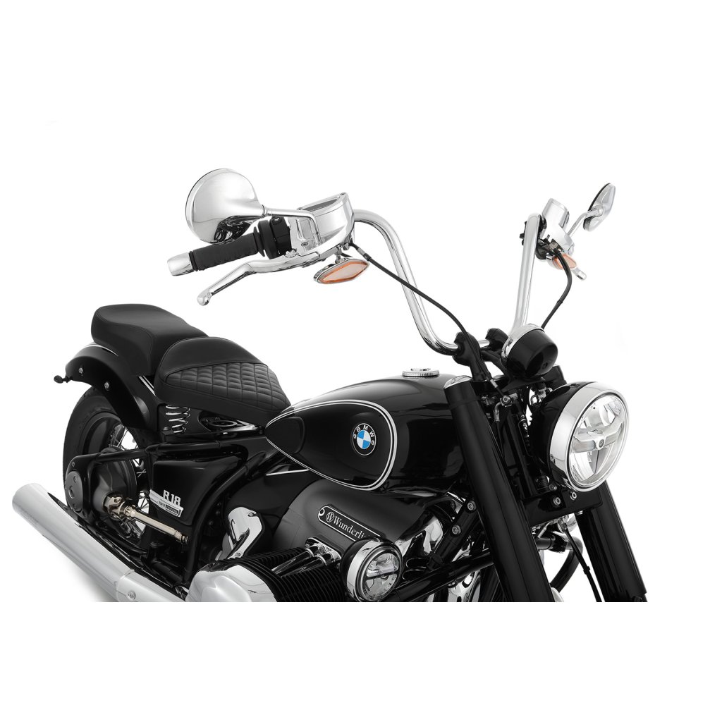 Ape Hanger vyvinuté ve vysokém designu speciálně pro BMW R 18. Občas až absurdní tvary Ape Hangers, které jsou někdy ohromující, ale nejsou dobré k ničemu jinému než k parádě, negativně ovlivňují ovladatelnost a bezpečnost jízdy v nejvyšší míře - to platí na dálnici, ale především na klikatých venkovských cestách nebo ve městech.