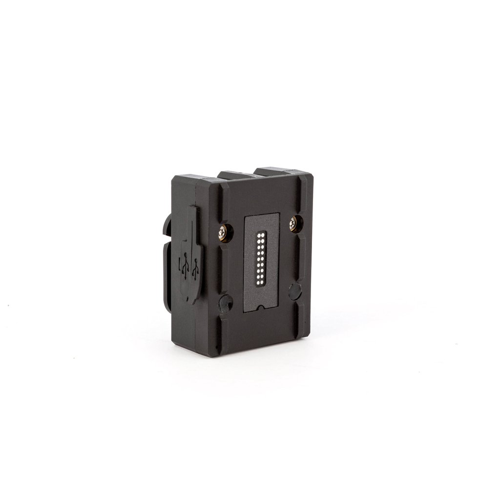 Na pravé straně pouzdra adaptéru se nacházejí dvě přípojky USB (USB 3.1 typu A a USB 3.1 typu C), které odpovídají standardům rychlého nabíjení QC 3.0 a QC 4.0 (QC = quick charge). Ty lze použít například i k nabíjení chytrého telefonu. Aktivita nabíjecího boxu se zobrazuje prostřednictvím modré kontrolky LED, která je umístěna viditelně nad oběma porty USB.