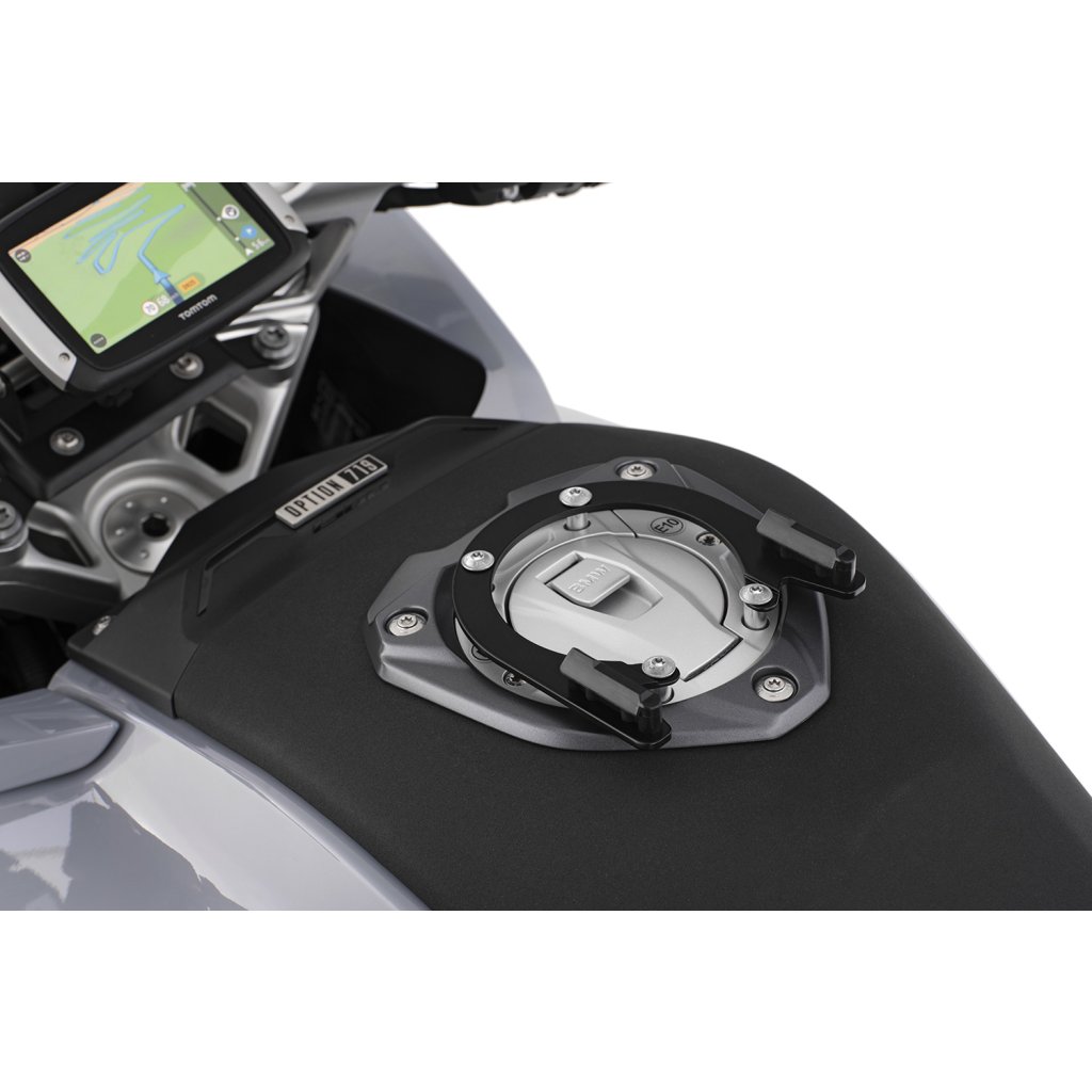 Model specifický takzvaný cisternový kroužek tvoří pevný základ pro bezpečné, mechanické uzamčení tankbagů CLICK BAG. Pro upevnění je CLICK BAG vložen do dvou vodítek adapteru nádrže shora, dokud se zámek automaticky nezablokuje. S tímto mechanismemna nádrž lze zámek uvolnit jedním tahem. To znamená, že tankvak lze okamžitě vyjmout - například pro doplňování paliva.