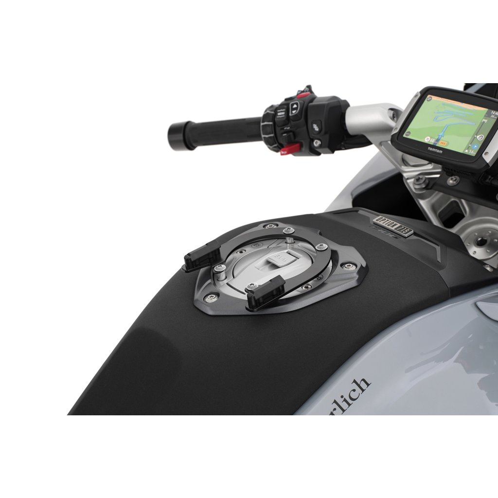 Model specifický takzvaný cisternový kroužek tvoří pevný základ pro bezpečné, mechanické uzamčení tankbagů CLICK BAG. Pro upevnění je CLICK BAG vložen do dvou vodítek adapteru nádrže shora, dokud se zámek automaticky nezablokuje. S tímto mechanismemna nádrž lze zámek uvolnit jedním tahem. To znamená, že tankvak lze okamžitě vyjmout - například pro doplňování paliva.